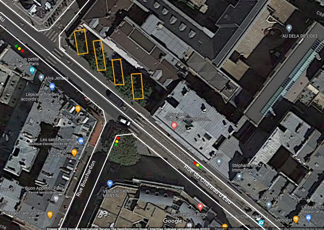 La solution la plus efficace, pour garantir les conditions de circulations ET les conditions de travail des pompiers, ça reste de peter un bon gros linteau et une porte de garage escamotable de 8m de large. Sinon, à moindres frais :