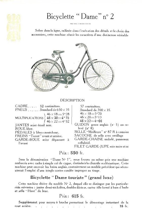 Bicyclette Terrot ? On voit un bout du "Terrot" sur le carter et le protège jupes. src : https://www.terrot.eu/images/terrot [...] s_1925.pdf Edit : Arf -> le modéle Dame n°1 à cadre renforcé destiné a une clientèle ecclésiastique Edit 2 : Trouvé le catalogue 1909 avec le détail de la transmission dite "retro-directe". Il fallait pédaler en arriére pour changer de vitesse je crois : http://terrot.club.pyreneen.free.f [...] m-0012.htm Les fameuses hirondelles des gendarmes avaient ce genre de systéme. http://amicale-police-patrimoine.fr/Hirondelles.html Message cité 2 fois Message édité par rakame le 06-11-2023 à 12:07:18 |