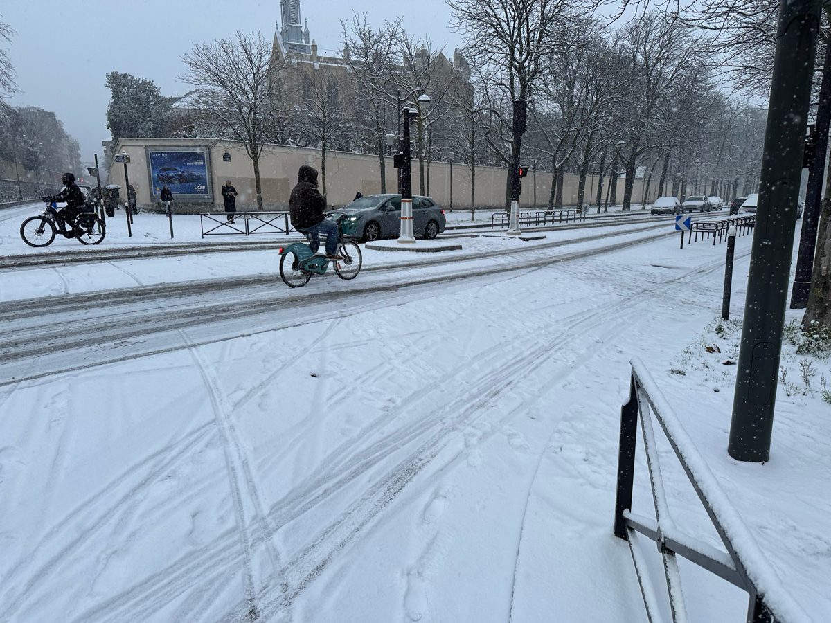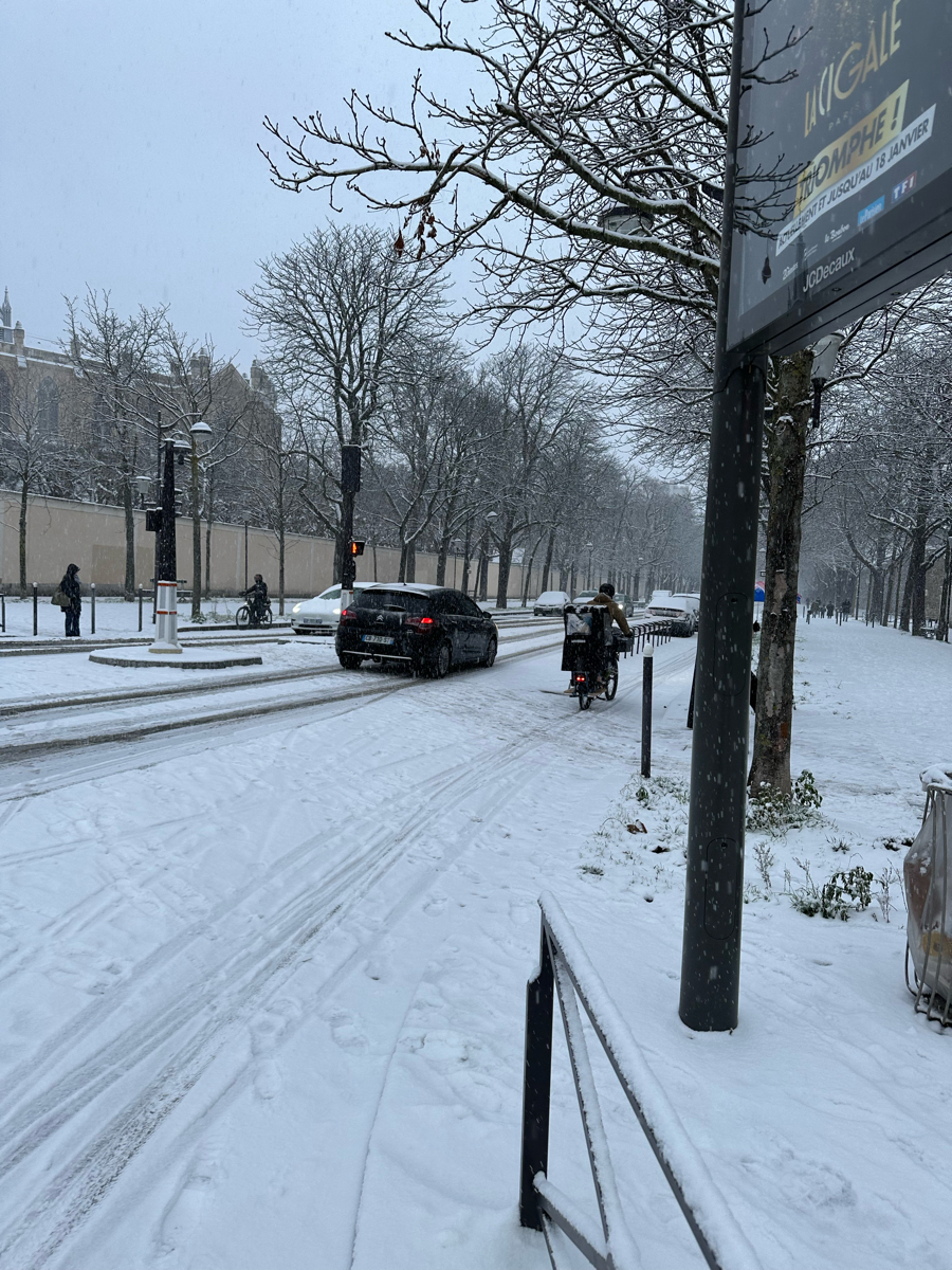 D'ailleurs c'était la bonne surprise : la nouvelle piste cyclable entièrement sur le trottoir malheureusement..., avait été salée.