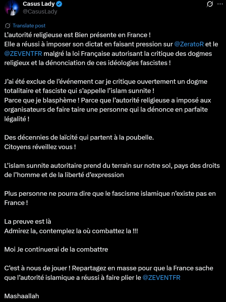 --------------- Tu as un problème avec la sharia fils de pu*e ? Twitter, 19/08/2024 |
