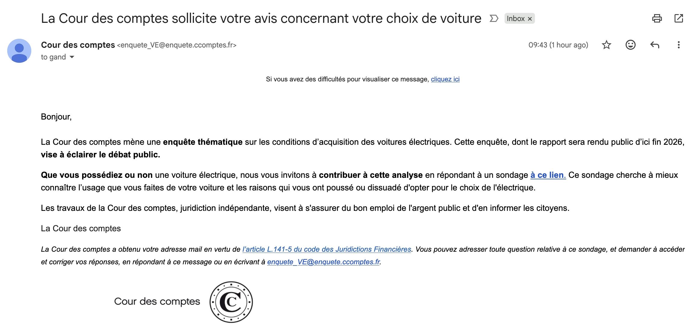 C'est un e-mail standard avec le code pour se connecter. Pas de lien bizarre. Message cité 2 fois Message édité par Valsou le 23-03-2026 à 19:23:01 --------------- Gamertag/Steam : Valsou | Mon YouTube | [TU] Cuphead - GOTY 2017 & DOTY 2022 | [TU] Forza Motorsport (2023) |