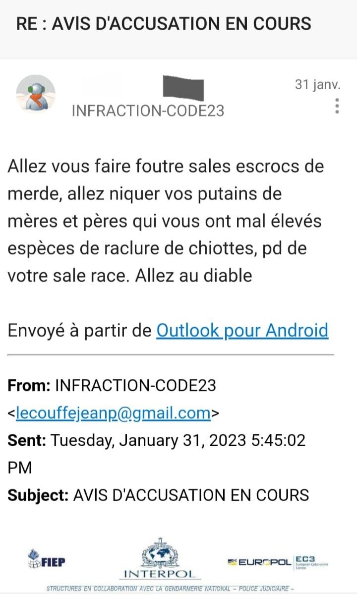 PierrotLeDingue Yes we KANTE ! | Tiens c'est marrant j'ai reçu un mail de Fedex_Fr et l'adresse mail derrière est mon adresse mail perso avec un point en plus juste avant le @. Je pige pas trop le projet de m'arnaquer avec ma propre adresse. Message cité 1 fois Message édité par PierrotLeDingue le 28-07-2023 à 12:42:04 |