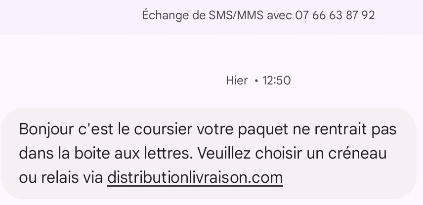 moonblood Non, je ne suis pas Moonboots | Attention c'est bientôt Noël, les sms et mails de faux livreurs vont pulluler : Bonjour, c'est le livreur. Je suis passe, mais vous n'etiez pas la. Veuillez reprogrammer votre livraison ici https://relay-colis-fr.com 358b63fb65894d0497f159e4c37e4c Une adresse -fr.com ? --------------- Mod : Mon Xaser III | On peut dire que t'es une lumière -QNTAL- | t'a été le meilleur du bulbe sur ce coup là -LoDeNo- |