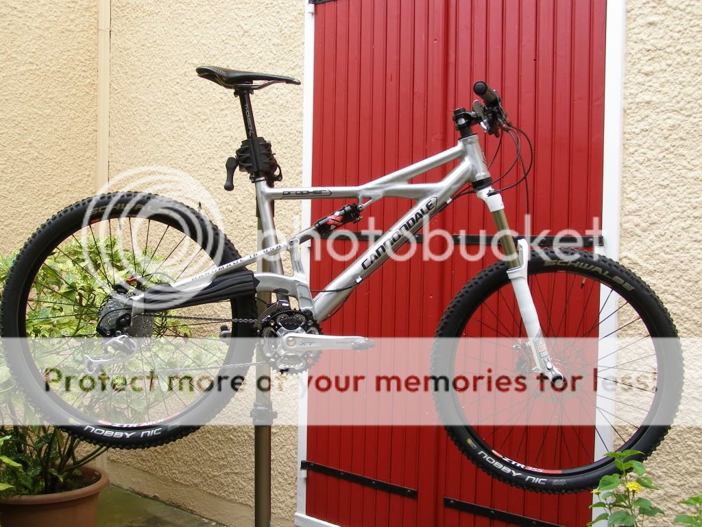 Jamais compris à quoi ça servait ce truc, quand on a déjà un pied de montage de roue And now, my BIKE ! (J'ai viré une entretoise sous la potence, Fox préconisant 30mm max). En attendant, j'ai reglé la fourche (en statique), mais je m'aperçois qu'étant donné la position relevée et un peu en arriere (j'suis grand), le SAG est parfois nul !, et si je donne un acoup sur le cintre, c'est pas super fiable, donc je sais pas trop comme font les autres sur des fourches encore plus hautes. Bref, si vous avez des conseils ^^ PS. Ah et le Notubes apres plus de 3 semaines d'immobilité complete a très bien tenu son role : la roue arriere avait très peu perdu en pression, et l'avant (qui avait peu tournée), un peu plus, mais pas a plat du tout. PS2 : et je cherche une protection pour le tube diagonal : SB3 propose une bande assez epaisse, mais 10€... ya pas l'équivalent dans les magasins de bricolage ? Message cité 2 fois Message édité par audioslave227 le 12-11-2010 à 16:27:36 --------------- Last.fm |