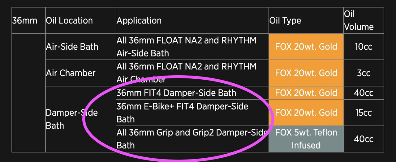 everybodie | Pour l'huile c'est ici : https://tech.ridefox.com/bike/servi [...] lume-chart - dont oui la 20WT Fox d'après leur reco ( tu peux y mettre aussi : https://www.racinglubes.fr/huile-mo [...] don_de_1_l si tu cherches à optimiser sur une plage plus grande de température) + de la FOX 5wt. Teflon Infused du coté de la cartouche Grip.
