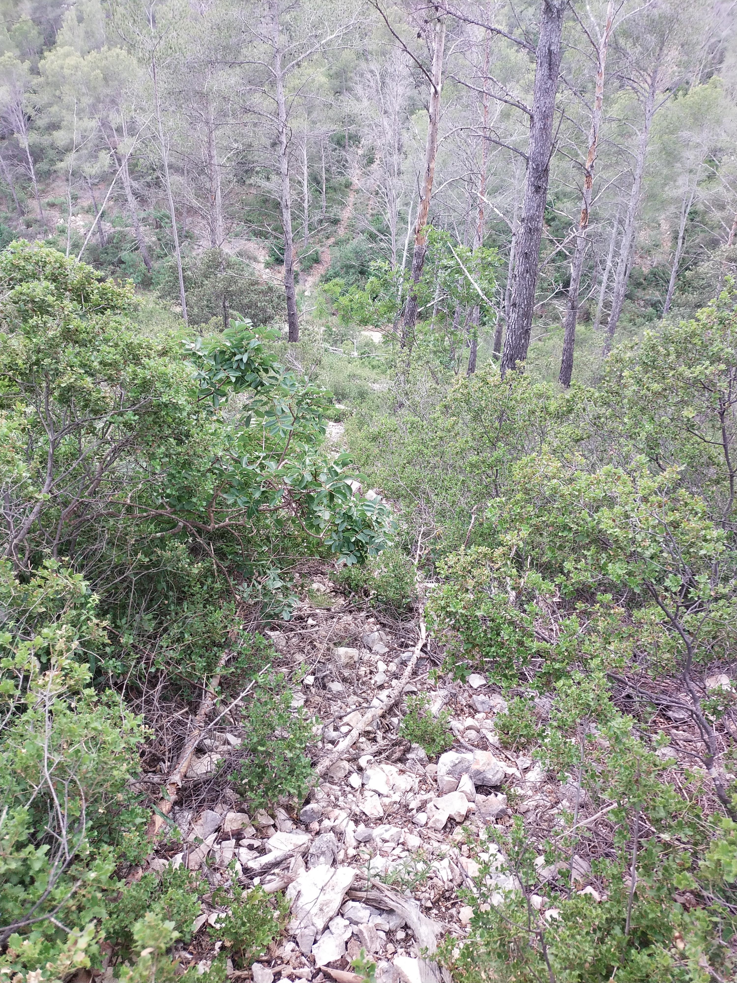 jluc Nothing else matters ... | Quand tu décides de quitter une DFCI pour suivre un petit sentier qui sent bon la garrigue et que ça finit dans un pierrier à 45° En bas un autre chemin praticable mais chiant --------------- "Strumming on the porch, a beer in reach", the JJCale meaning of life ♫♫ - |