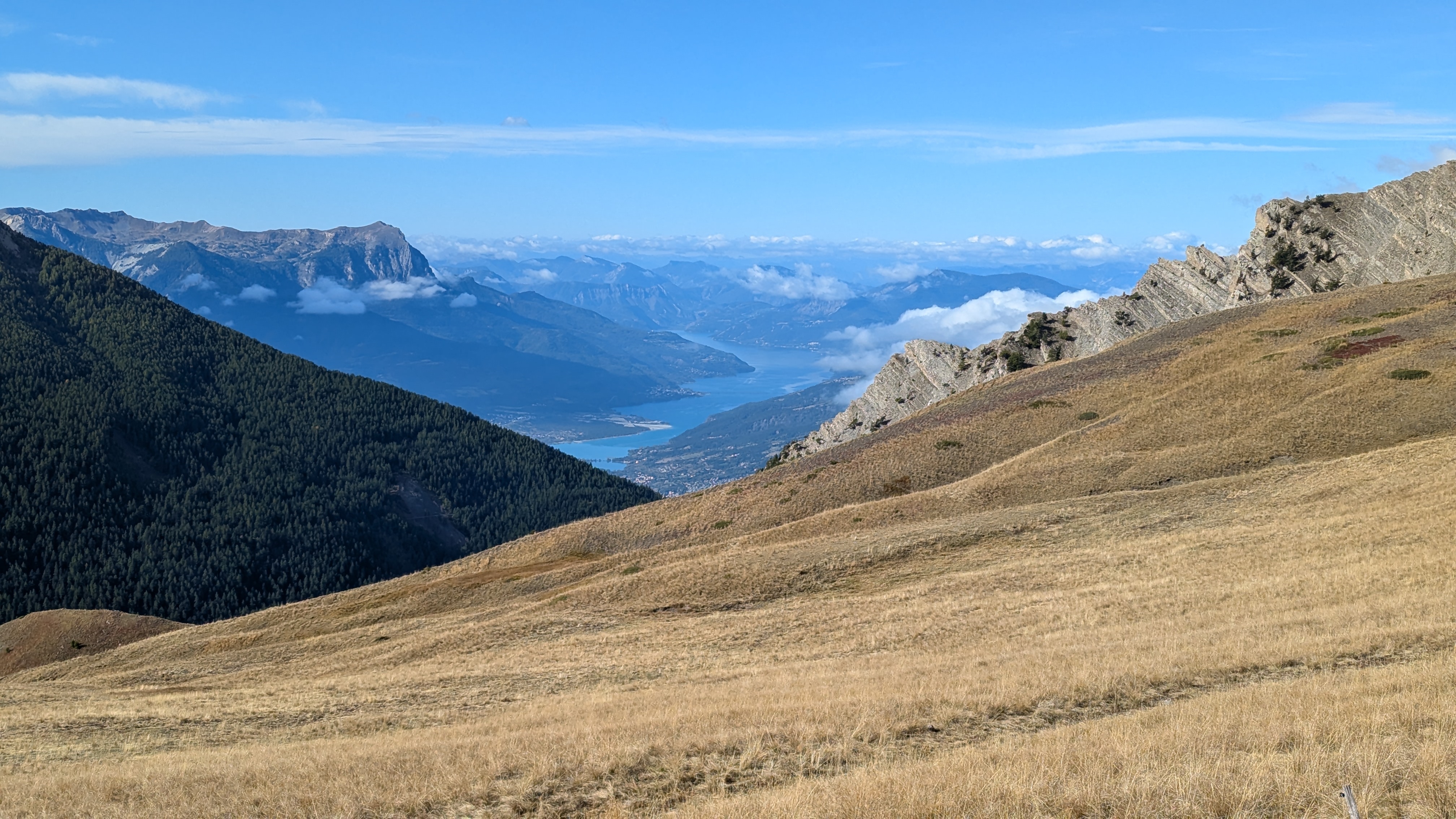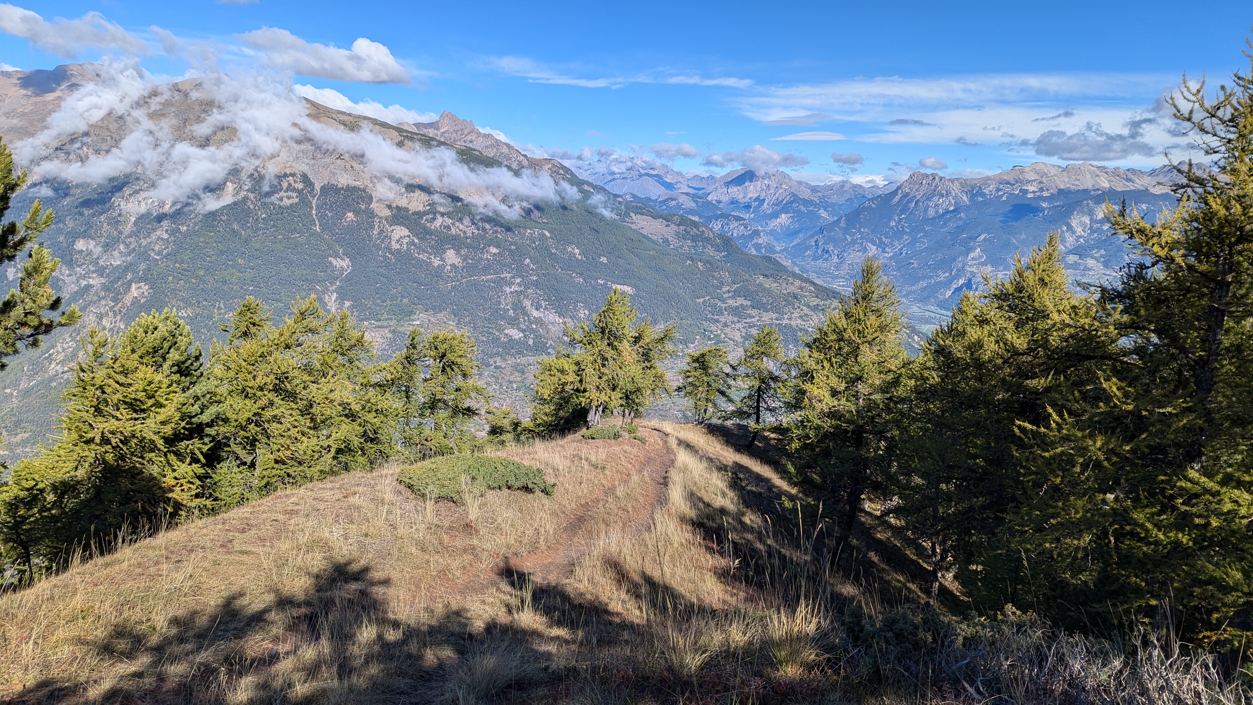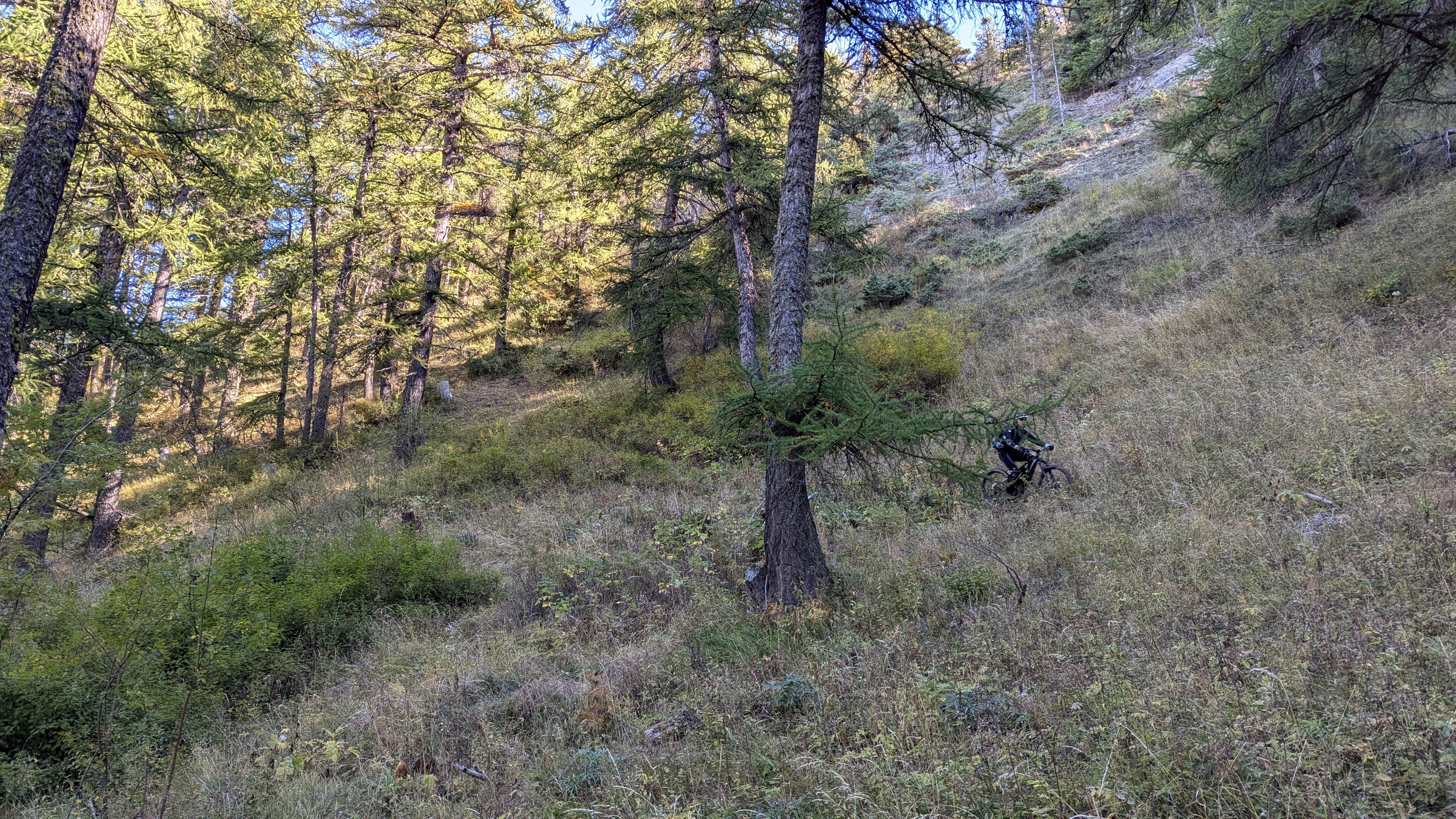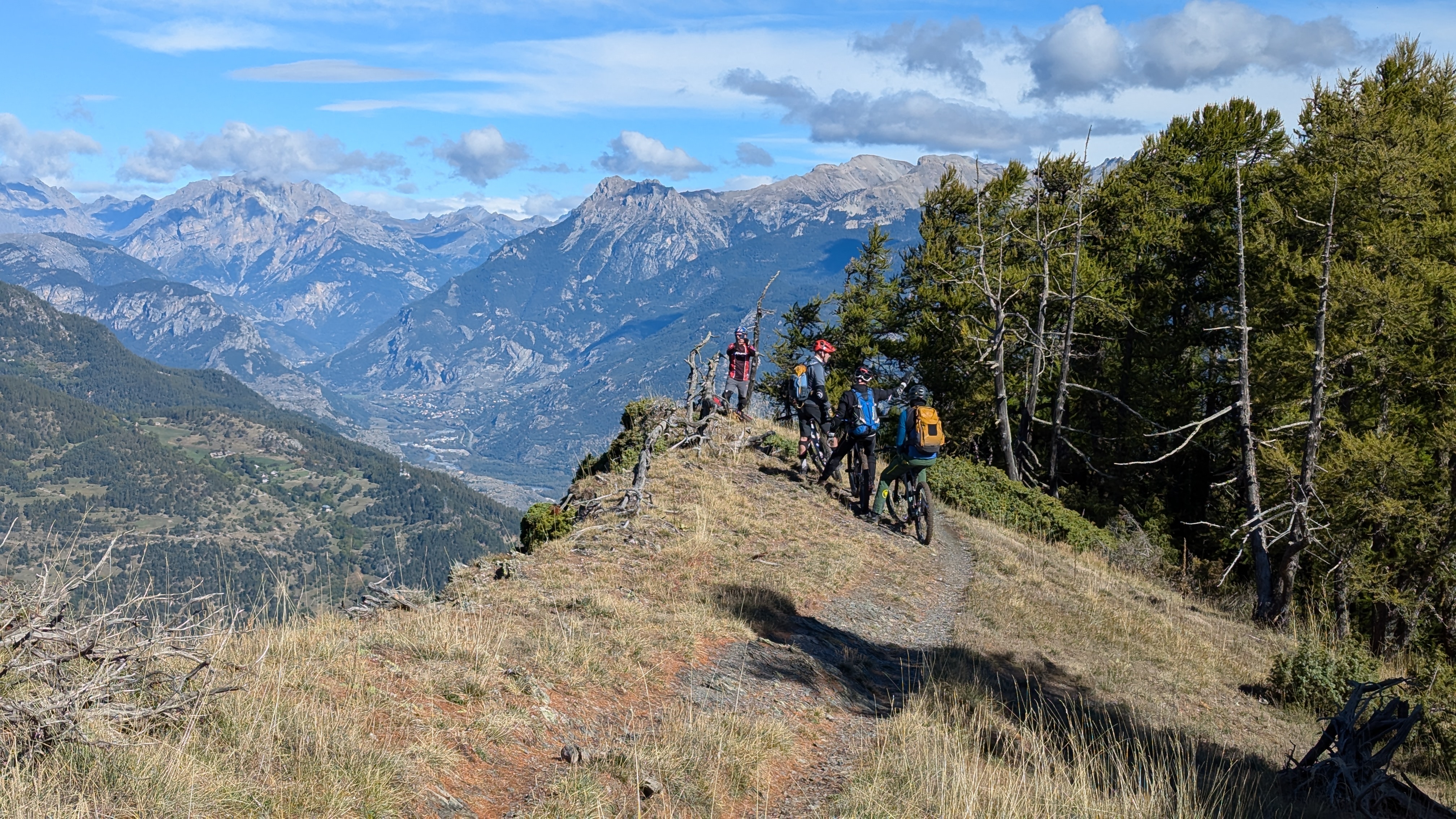 ManuLM | Reprise du message précédent : Agenda chargé cette automne, je devais organiser un week-end avec des potes dans le Queyras fin septembre, puis aller a la KiMacaveyron le premier week-end d'octobre. Il reste tout de même les 3 jours en Queyras avec les copains, tout n'est pas perdu ! On se prépare donc le vendredi matin a Risoul, RDV 9h pour monter en haut de la station et ensuite descendre le long de la crête de Martinat. https://rehost.diberie.com/Picture/Get/f/319579 Légende de Peak Finder: https://rehost.diberie.com/Picture/Get/f/319618 On monte nos 500m de D+ en un peu plus de 5km pour arriver au départ du single. On aperçoit le Lac de Serre-Ponçon de l'autre cote de la station, au sud-ouest, et le grand Morgon qui le surplombe sur la gauche. https://rehost.diberie.com/Picture/Get/f/319580 Et surtout le départ du single, qui commence pas une trace rapide sur la ligne de crête, et rejoint la descente des Martinats qui se détache devant les nuages sur la droite. Cette invitation au voyage ... c'est parti pour 1500m de descente https://rehost.diberie.com/Picture/Get/f/319581 Le depart du single est bien fléché https://rehost.diberie.com/Picture/Get/f/319582 on arrive tres vite sur la crete, c'est champetre, petits ponts de bois, vaches qui nous regardent a peine, faut juste se mefier des quelques racines piegeuses en terrain un peu humide par endroits. https://rehost.diberie.com/Picture/Get/f/319583 La crete offre des sections roulantes ... https://rehost.diberie.com/Picture/Get/f/319584 ... , mais on reste prudents car il y a de l'exposition et des pentes importantes, souvent bien signalées https://rehost.diberie.com/Picture/Get/f/319585 Sam se lance ... https://rehost.diberie.com/Picture/Get/f/319587 On s'arrête régulièrement pour profiter de la vue, et se poser un peu, la descente est longue et parfois physique. Et de toute façon le KOM est d'une autre planète, a 16 minutes ... https://rehost.diberie.com/Picture/Get/f/319588 Le single quitte ensuite la crête pour se faufiler dans les mélèzes et les hêtres, et enchaine pas mal d'épingles, et de passages un peu techniques dans du gras, et du roulant. On arrive pour finir dans la plaine, au niveau des sources chaudes du Plan de Phazy, on on en profite pour rincer nos machines et rajouter dans un bassin un peu de boue réparatrice digne d'un spa 5* Au final 14km, 520m de montée et 1510m de descente. https://rehost.diberie.com/Picture/Get/f/319602 Message cité 1 fois Message édité par ManuLM le 07-10-2024 à 16:35:25 |
