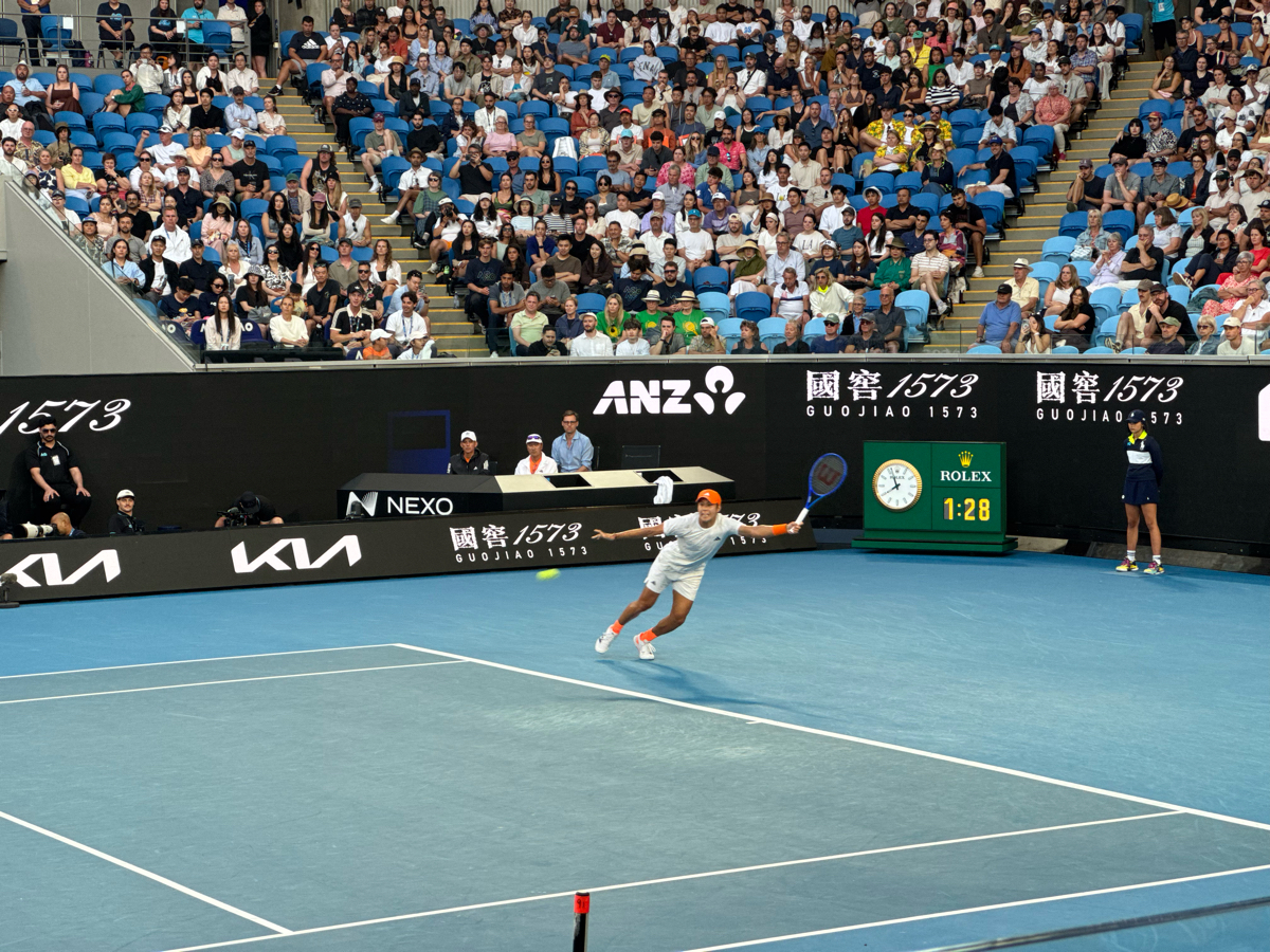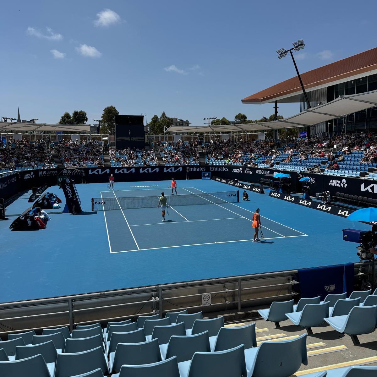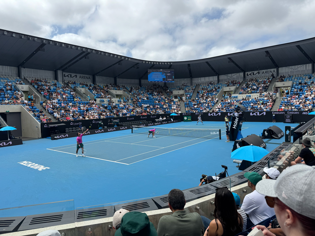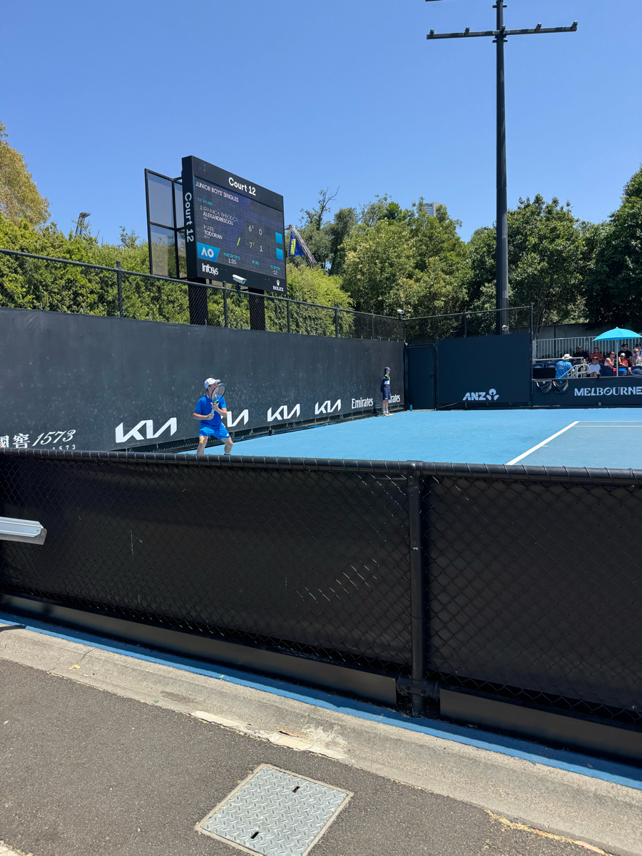 La journee commencait avec des matchs pas top sur le Margaret Court, et donc on en a profite pour aller voir des matchs sur les courts annexes (ANZ, KIA et 1573). Contrairement au jour d'avant ou on etait en milieu de court (niveau hauteur), j'ai reussi a prendre des places au deuxieme rang. Ce qui etait top pour voir les joueurs de pres, mais cote chaise d'arbitre donc pas top du tout pour la hauteur de balle (on peut pas tout avoir)