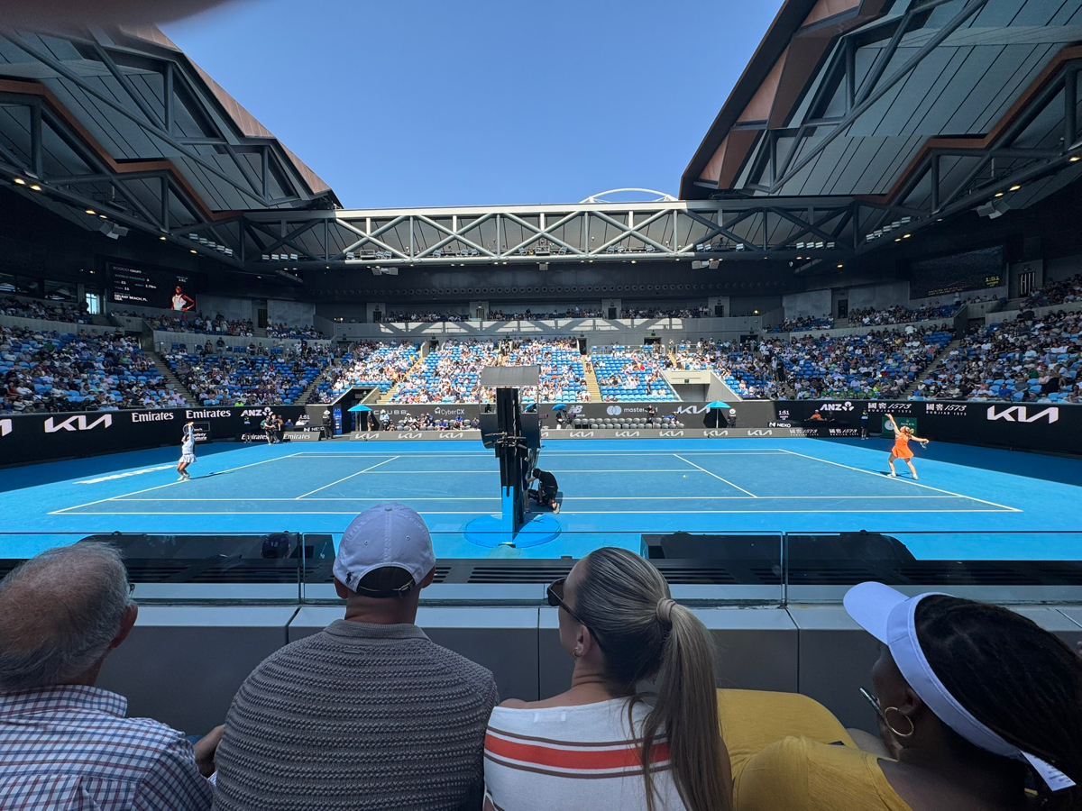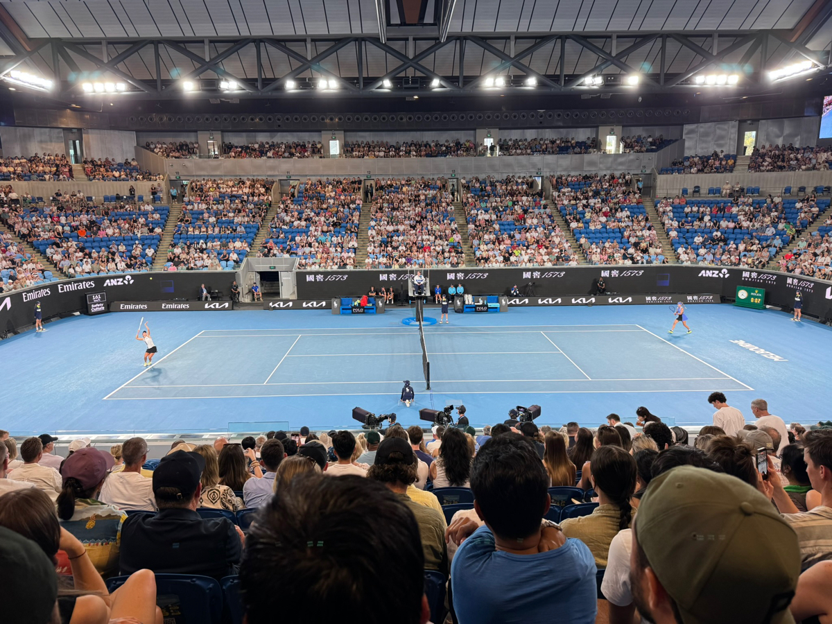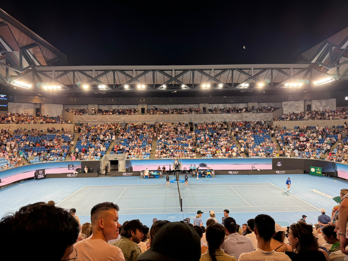 Apres une bonne journee a visiter Melbourne, direction Margaret Court pour la session de nuit. C'est bien indique, on rentre facilement, et les choses serieuses commencent...