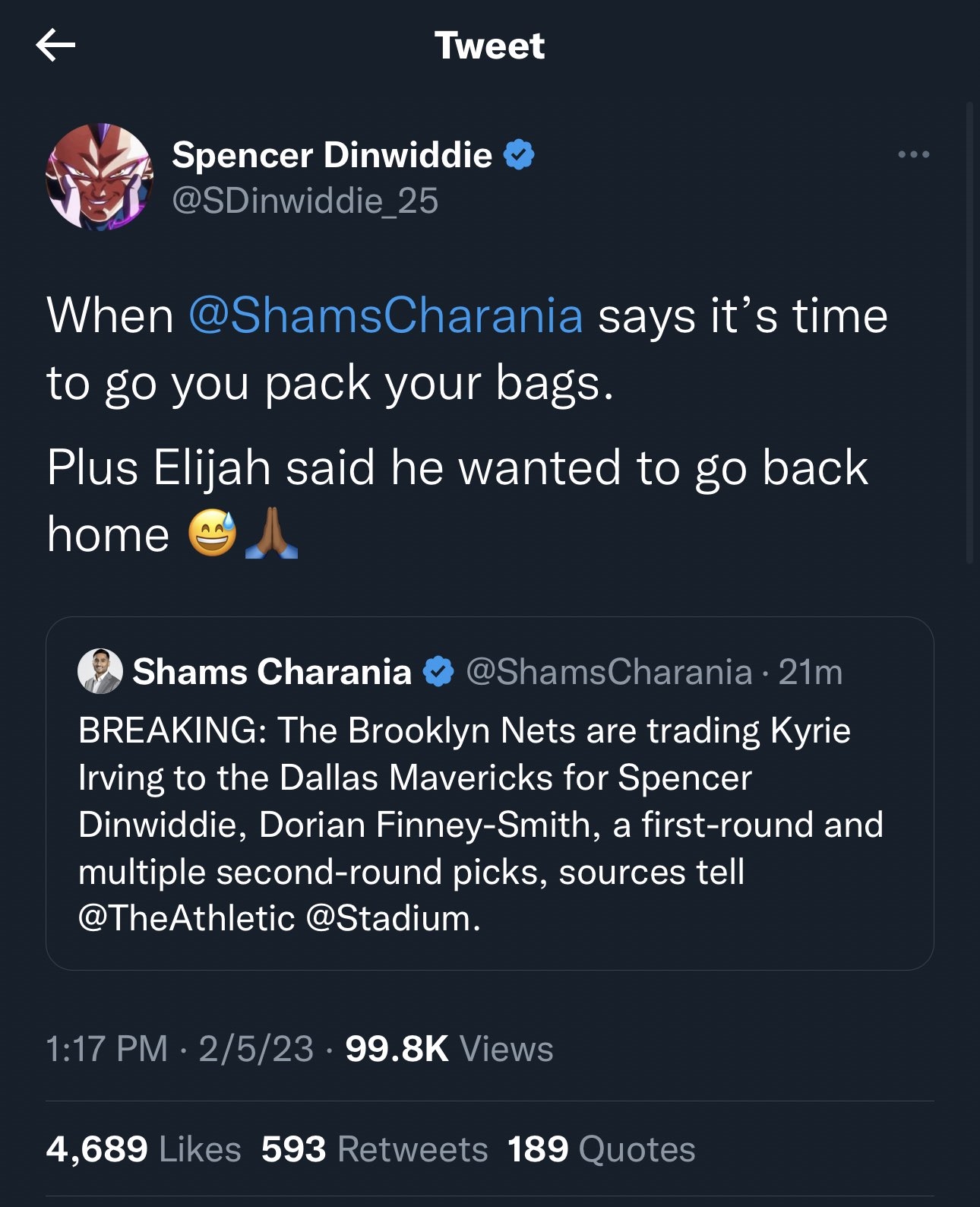 Irving ça fait penser à Rondo en un peu moins pire. Rondo à Dallas c'était un carnage. Sinon je comprends pas pourquoi Irving a demandé un trade alors qu'il pouvait être FA en fin de saison. Message édité par basketor63 le 05-02-2023 à 23:16:07 |