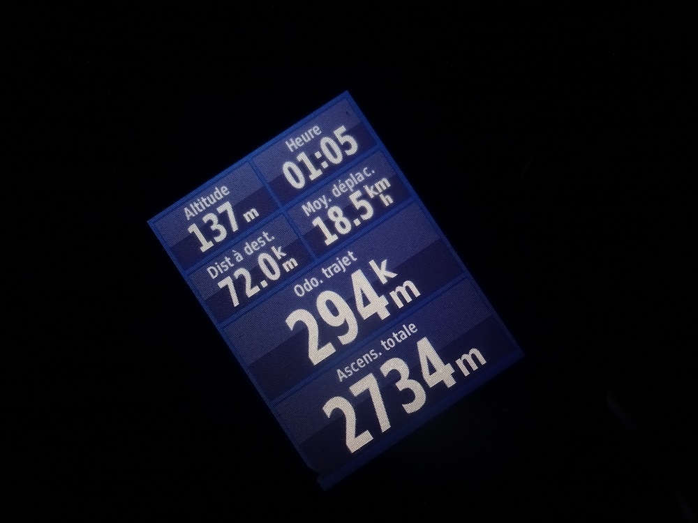 Aucune idée de la puissance utilisée, il y a tellement de paliers sur cette torche que je fais selon le besoin. Par contre je m'éclaire jusqu'à assez tard le matin et tôt le soir pour être vu. Au final j'ai consommé l'équivalent de 2 accus sur les 3. Par contre c'était réglé un poil bas sur le Gigot donc j'ai du pousser davantage la puissance qu'avec le Btwin qui est réglé au poil, mais j'avais jamais roulé de nuit avec le Gigot donc je suis parti avec un réglage au doigt mouillé dans le garage 6 mois avant (ces cascades sont réalisées par des professionnels, ne tentez pas de les reproduire chez vous)