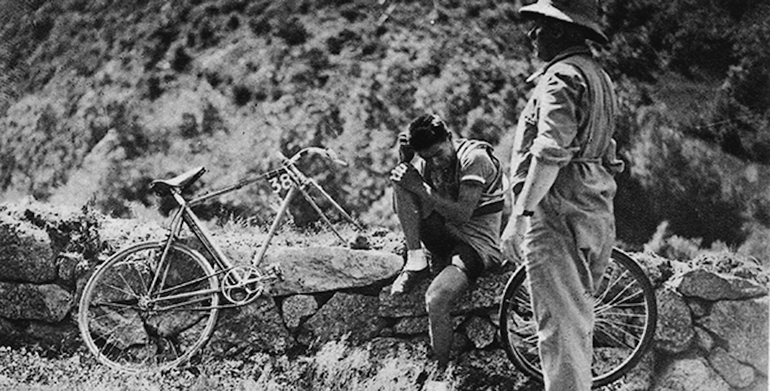 Non, pas celle-là, on voit un coureur en pleurs ou désespéré d'avoir du abandonner.