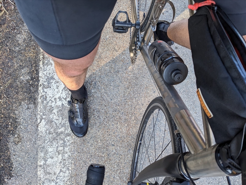 J'ai donc joué au jeu de taquin avec les roues / pneus, et monté les GP5k qui patientaient depuis quelques mois dans leur emballage. Sur les DT PR1400 Oxic, et comme j'ai mis ça sur le Titane qui avait les roues charbon, j'ai aussi dû me taper un changement de patins