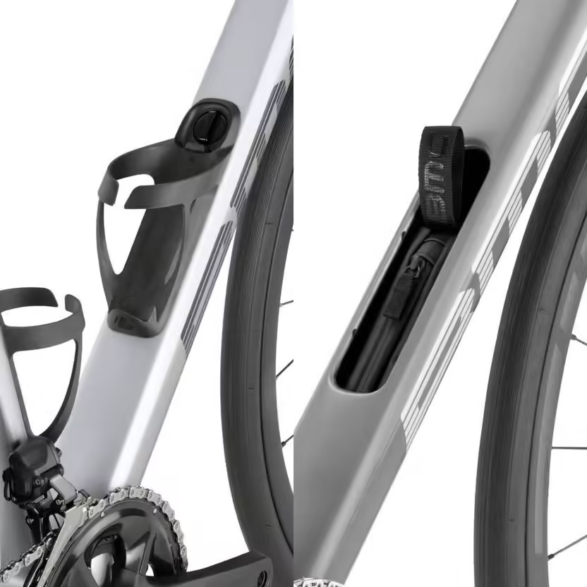 La lumières n’est pas fixée à la tige de selle mais insérée à sa base et il y a un 2ème « cache en caoutchouc d’entourage de tube de selle » fourni qui ne comporte pas le trou pour la lumière. Donc si on l’enlève et qu’on remplace le cache il n’y a ni vis, ni trou, ni clip qui reste, c’est vraiment bien pensé