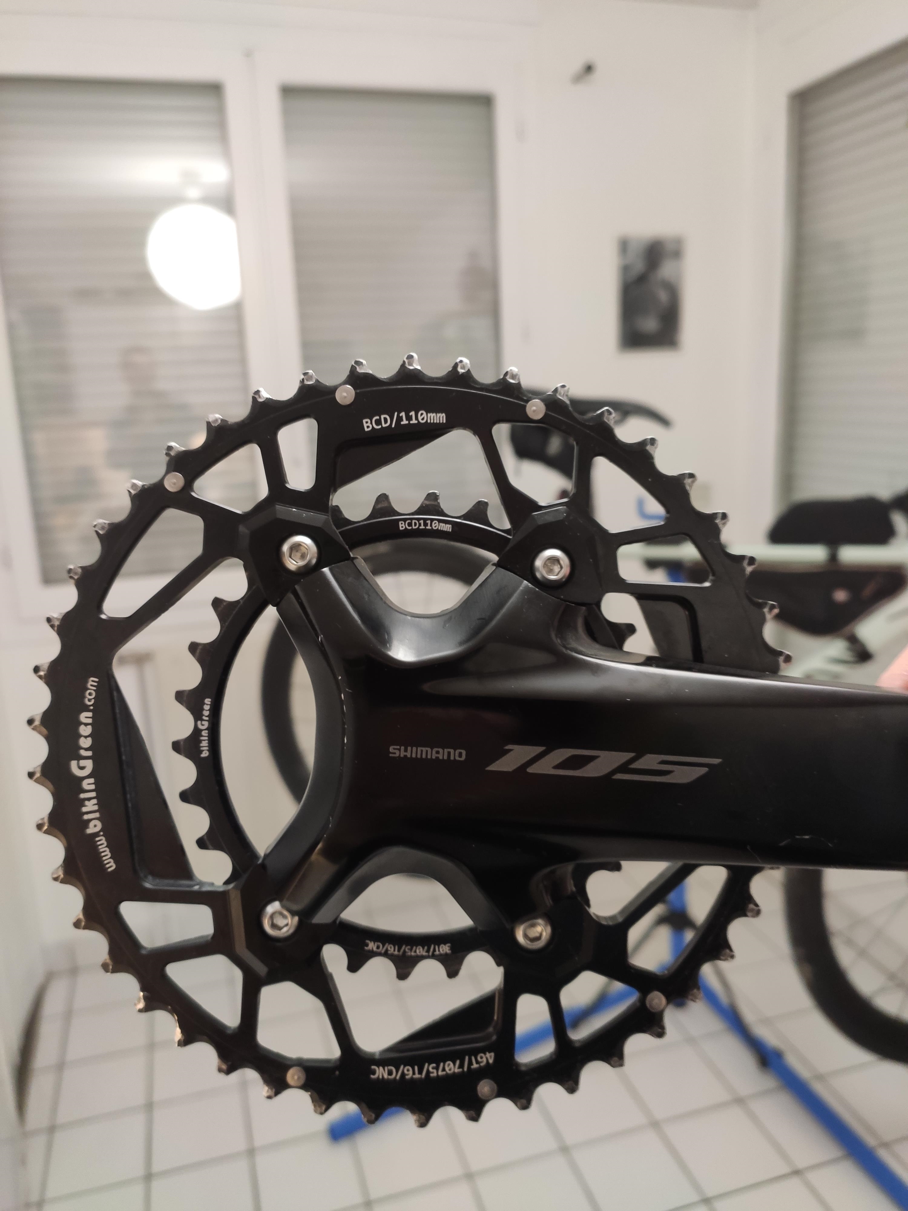 Normalement t'as du jeu sur les braze on, même pas 1mm ça suffit, ton dérailleur avant me semble trop tourner vers l'extérieur |