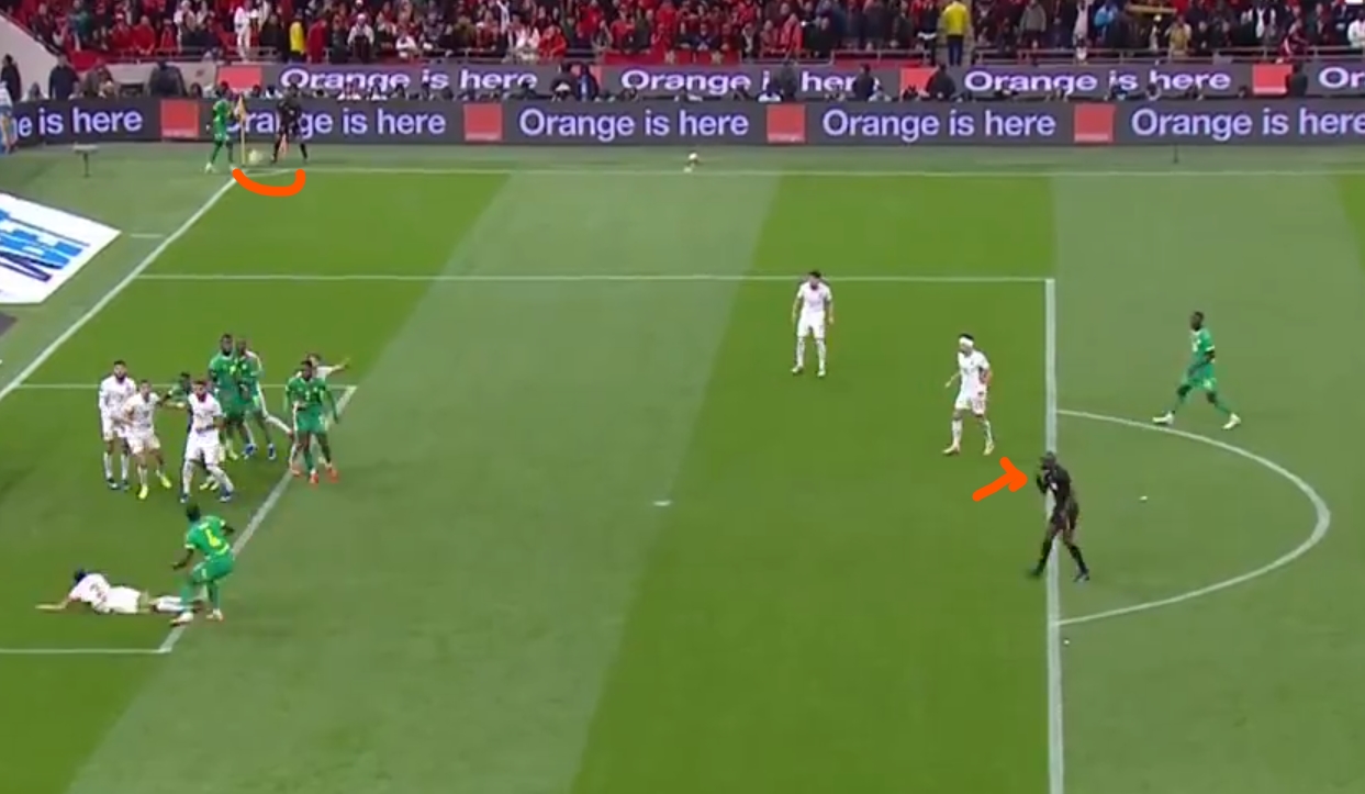 oui la faute est limite mais l'arbitre la siffle TRES tôt donc on peut meme pas dire qu'il siffle pour annuler le but et avantager les marcoains il siffle alors que le ballon est encore dans l'air hakimi est une merde oui