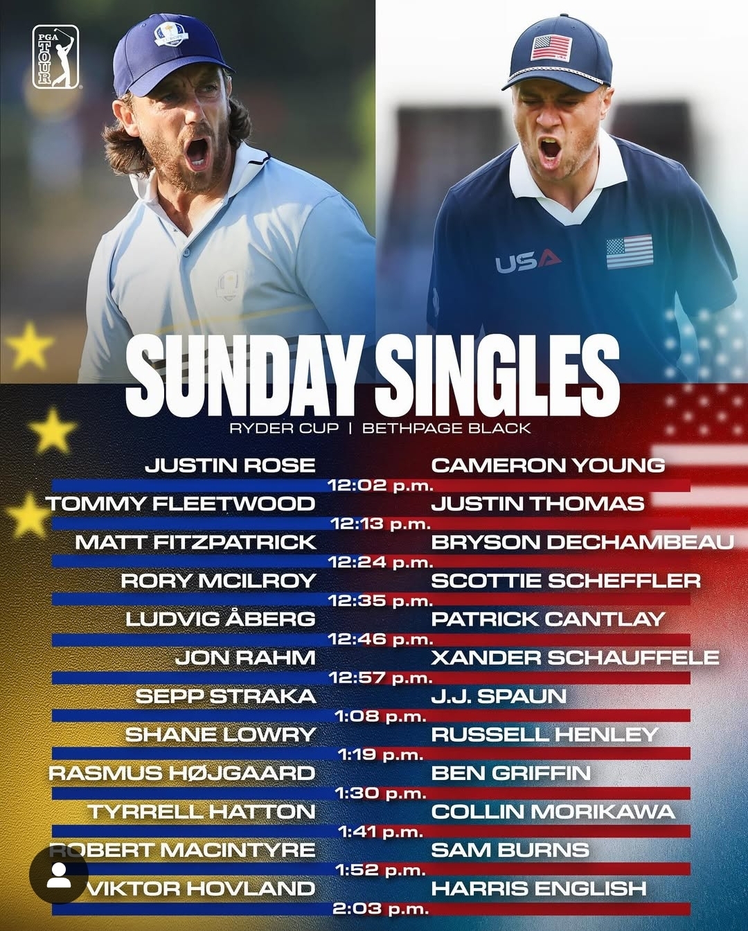 Y a le record de points à battre pour l’Europe. A vérifier, mais pour une victoire européenne sur l’ère moderne ça doit être 18,5 et pour une victoire américaine 19 pts.