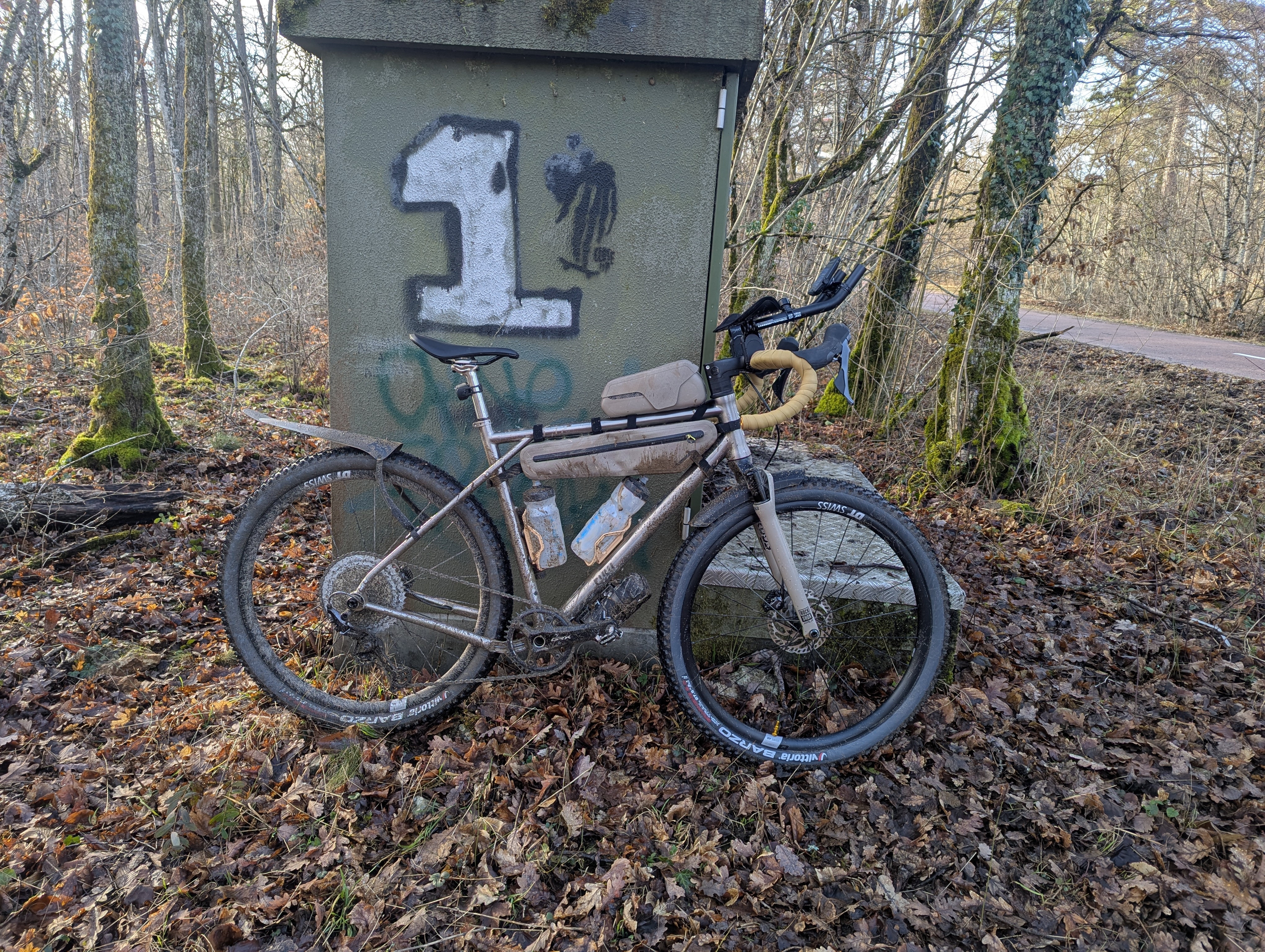 kaillou38 mouton à numéro | Voilà, upgrade du 3T bien avancée Les roues je les ai mises en photo la semaine dernière : Duke WRX 27 + dt240 Passage en axs. Force pour les poignées/ freins, apex pour le dérailleur. Ça sera changé plus tard ça Pédalier rotor aldu carbone, en axe normal. Donc plateau en déport 3mm seulement de chez passquest. Heureusement que les chinois font tout et n'importe quoi sinon j'étais bon pour racheter un axe wide. Selle slr boost carbonio Potence vision dont j'ai modifié le capot pour passage de gaine en interne, éviter cette gaine dégueue qui fait des grandes boucles pour rentrer derrière la potence. Quand j'aurai bien validé, je ferai un truc propre pour la mousse de protection qu'on voit. Spacers custom impression 3D pour l'adaptation entre le cadre et la potence. J'ai quelques idées pour que ce soit plus joli. Visserie quasi full titane couleur bronze, Ali D'origine, il reste le cadre, la tige de selle mais pas le chariot que j'ai dû changer pour la selle, et les deux roulements de JDD 8.05 kg, avec pédales, porte bidons. C'est plus léger que beaucoup de vélos de route... Premier test aujourd'hui sur route, c'est excellent. On verra quand ça aura séché un peu pour aller dans les chemin Message cité 1 fois Message édité par kaillou38 le 21-02-2026 à 22:50:29 --------------- ras |