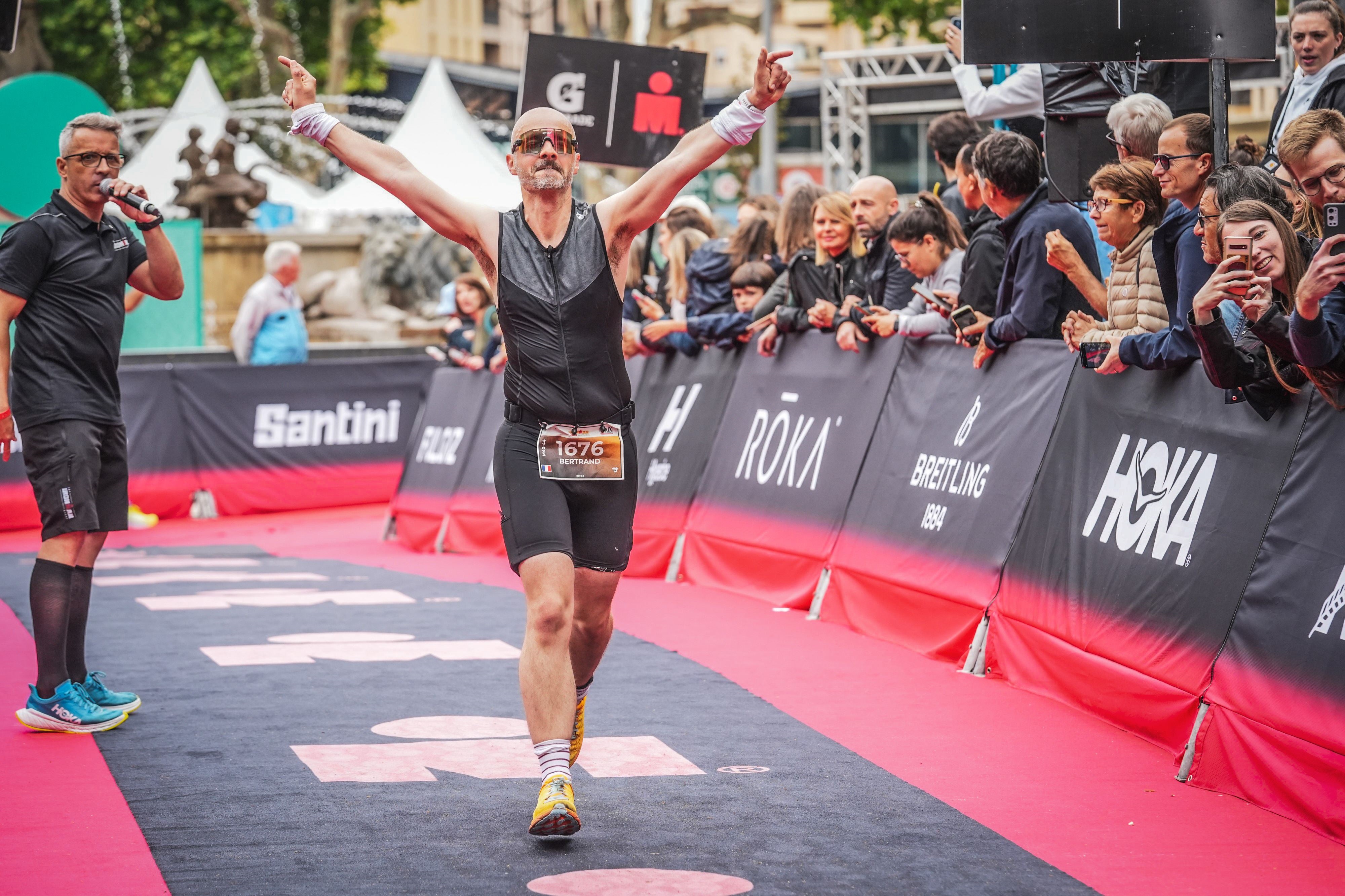 Dernier passage côté loop à la rotonde. Je n'avance toujours pas mieux. Mais la, c'est bon. Je sais que ca va le faire. Je vais terminer. Bon il y a beaucoup moins de participants sur la route, ne reste que des gens en souffrance comme moi. Pendant une côte, on parle avec un autre gus qui est dégouté. Il m'explique avoir crevé 2 fois pendant le vélo, sa course étant niqué, il a plus le courage de se mettre dans le dur sur la course à pied. Ca se comprend. La fin du dernier tour arrive, passage vers le dernier ravito. Comme depuis le début, un DJ est présent et anime ce coin. Je croise mes parents avec mes gamines, petits bisous aux filles. Ca me permettra intelligemment de m'éloigner de 2 concurrents devants et terminer seul sur la ligne, "mon moment". Et la enfin j'ai droit à la bifurcation finish line. Le speaker crie mon nom, j'y suis