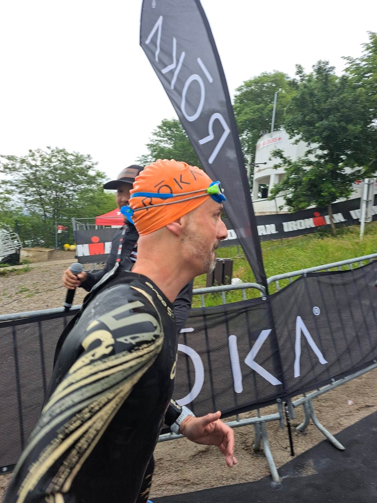 Post course. Sur le coup juste après la ligne, j'ai une petite larme à l’œil. Bordel c'est fait. J'ai terminé un truc pareil. Putain ca fait vraiment plaisir, bon la course à pied fut vraiment très compliquée, mais bordel c'est terminé.