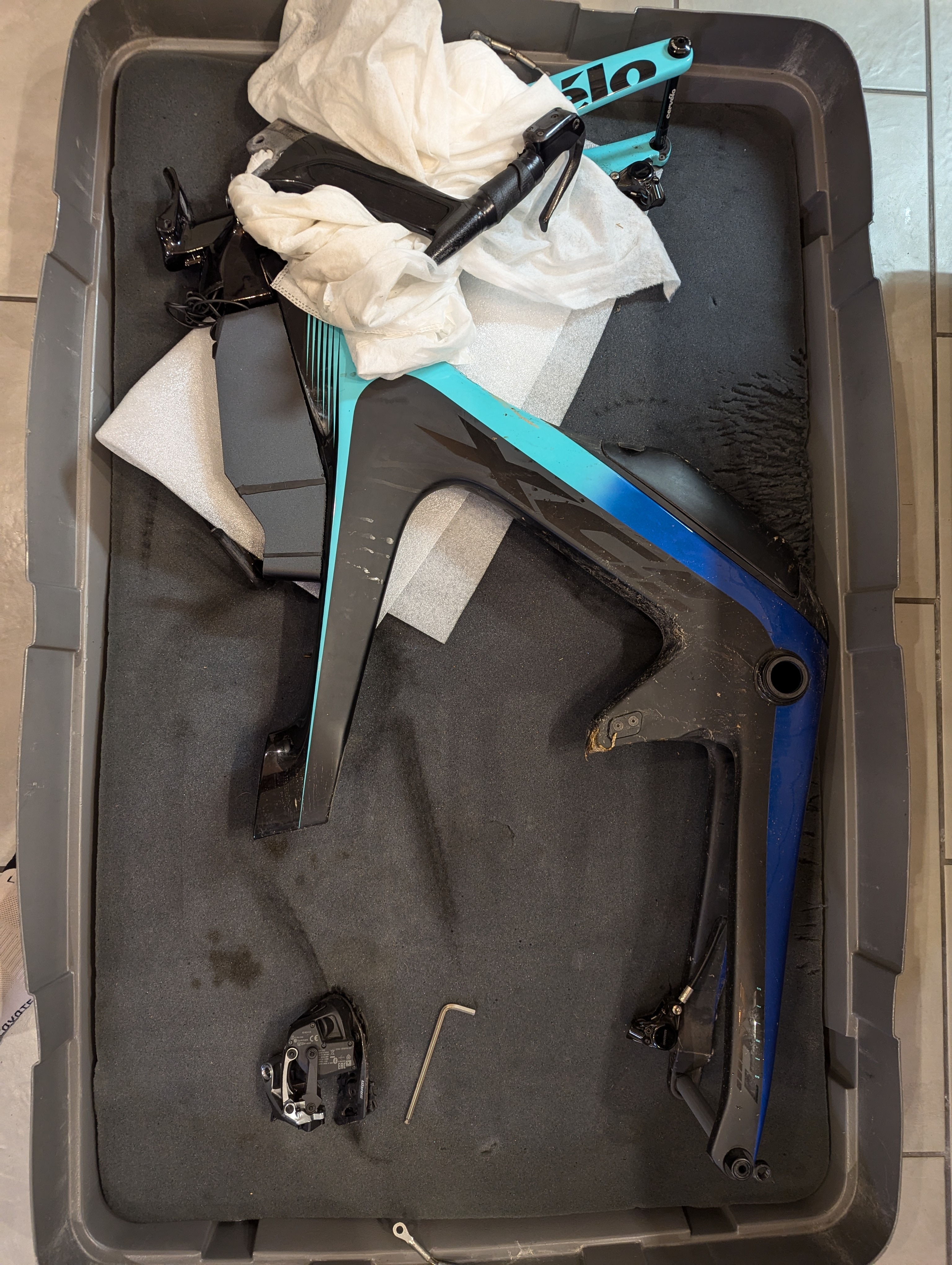 Après sur le mien, ça va, le cockpit est fait pour se replier, juste besoin d'enlever le bloc prolongateurs. Sur celui d'Agathe, c'est pas le cas, je démonte l'intégralité du poste de pilotage, potence, jdd, pour sortir le base bar. Et faut démonter les étriers pour pouvoir tirer sur les durites... 4h à l'emballage pour les deux, autant à l'arrivée pour remonter. L'avantage étant qu'il n'y a pas de réglage a refaire, sauf les étriers sur le P5. Je réfléchis quand même très sérieusement à deux valises bike box Alan. Mais c'est encore 2000 boules de budget Message cité 1 fois Message édité par kaillou38 le 17-10-2024 à 09:25:34 --------------- ras |