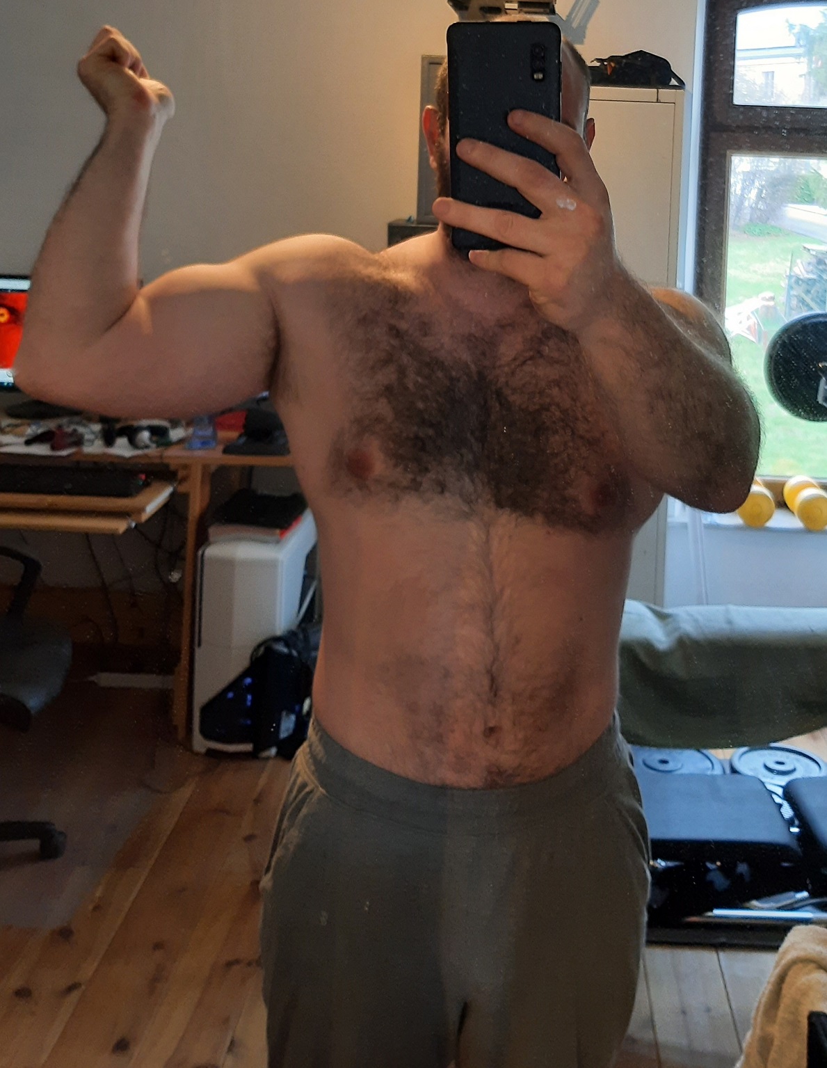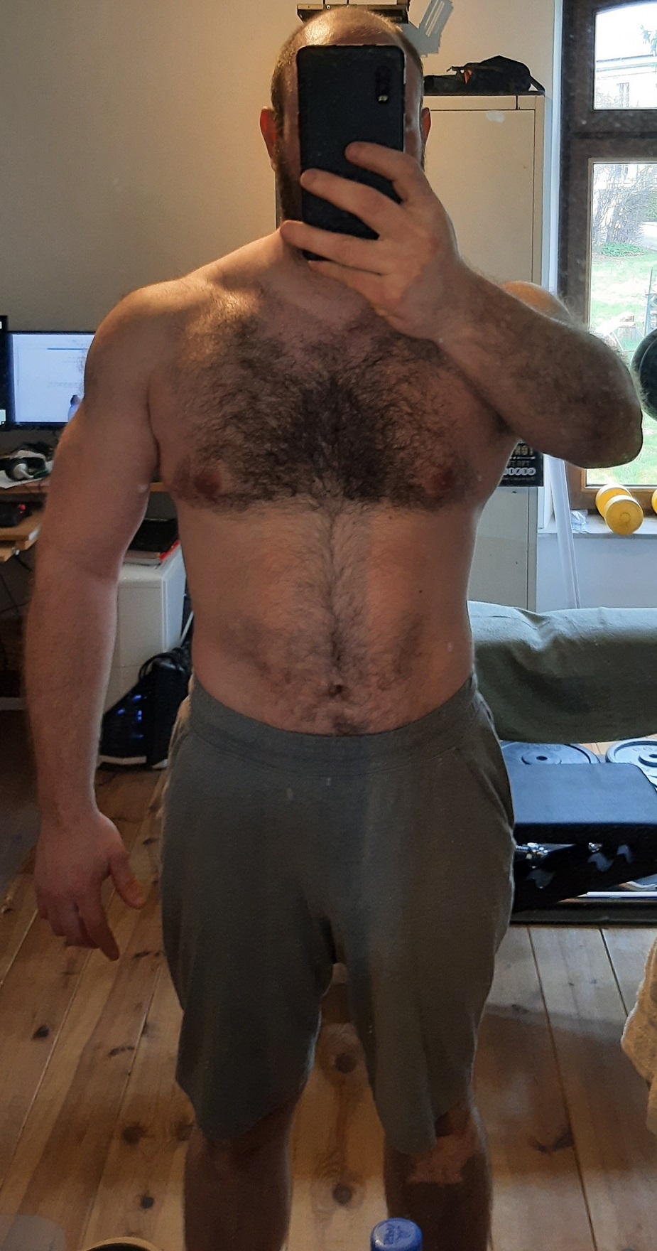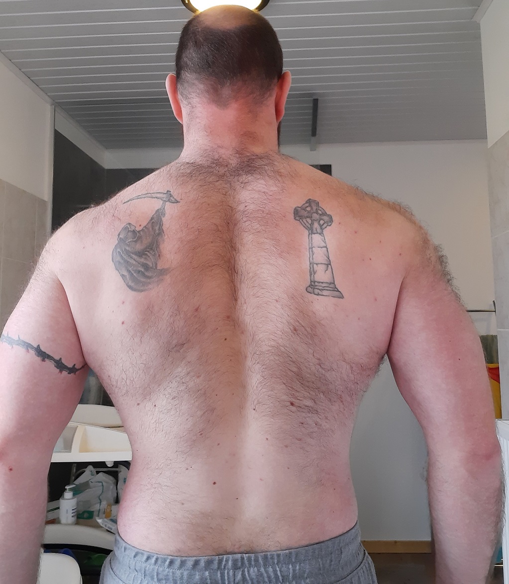 DjullClint Sharak ! | Pas de défi ici autre que "être fit pour les 40 ans". Après arrêt de la muscu pendant 2 semaines suite à lumbago de madame* puis famille à la maison, on a repris tranquillou cette semaine. Lors de la séance d'aujourd'hui, madame a pris qqs photos et j'suis assez content du résultat après 2 mois de ReF même si je ne suis pas à ma cible et que niveau musculaire, y a beaucoup de chemin à faire ! Mais du coup, je fais un petit #BonjourTopic pré-weekend