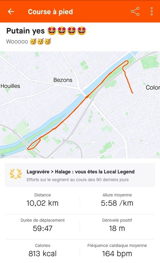 Mardi j'ai pu faire 45 min à 6'04/km, j'y croyais pas.