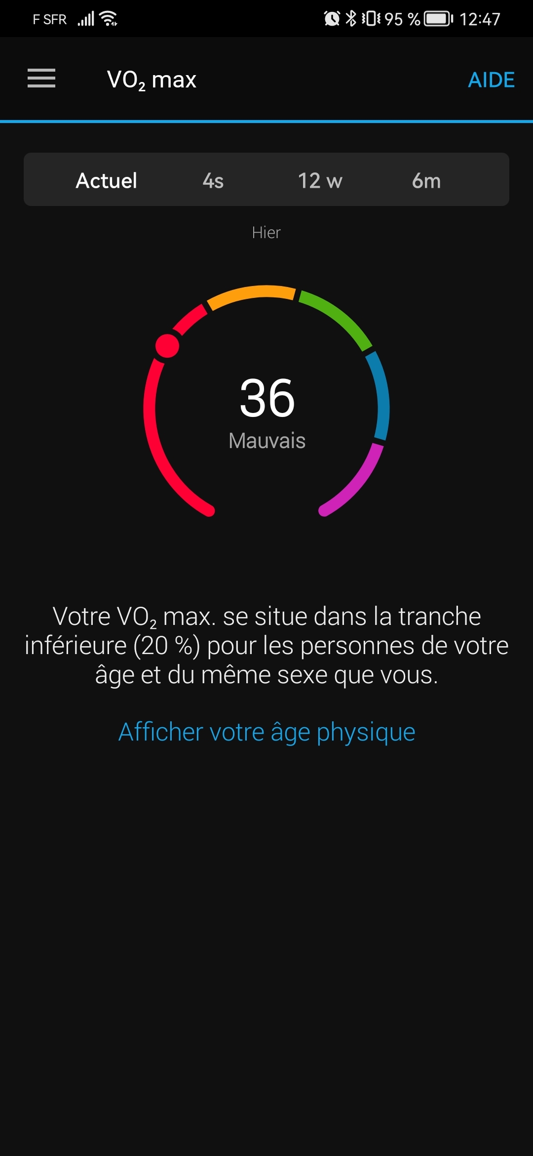J'ai aussi un lien, il me dit 37 mais qu'il manque de données pour calculer. Peut-être parce que je ne la porte pas H24. J'ai la Venu 2S.
