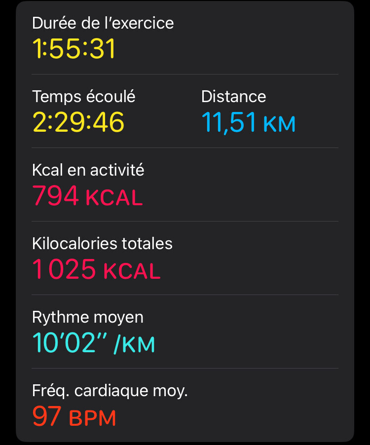 iskor | Ce matin, course de 11 bornes à 6:12 de moyenne. Sur du plat, mais bon, c'était pas mal. |