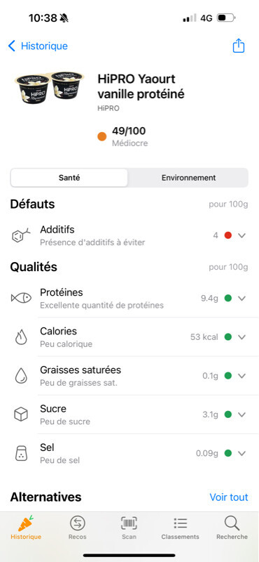 ezzz 23 | Les HiPro ont un niveau de protéine équivalent au Skyr et petit suisse (autour des 9.5g/100g) mais pour moi le pb ça reste les E900. Si c’est pour prendre ça au moins une fois par jour c’est bof