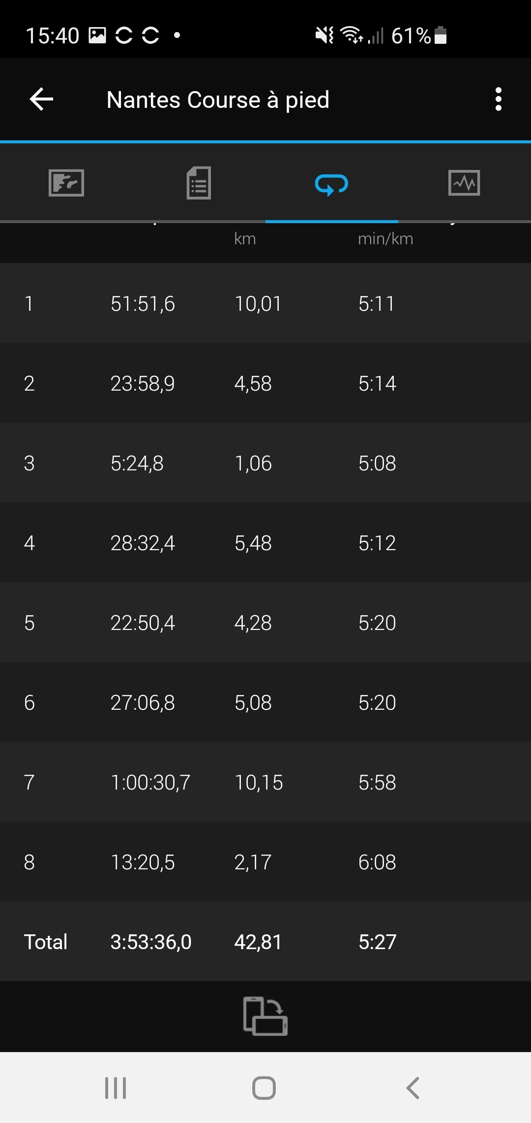 Donc 3h52mn01s sur la ligne, moyenne à 5.30 au final.