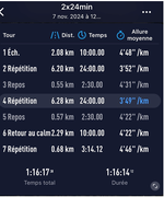 J'ai déjà adapté ! Je fais régulièrement des jours de repos et je cours de plus petite distances, 2 a 3x semaine avec un peu de qualité pour m'entraîner au 10 + 1 ou 2 sortie EF hyper cool avec un pote encore bcp plus nul que moi. J'ai une tension assez basse de base mais ça ne m'a jamais posé de soucis... Je pense effectivement a une fatigue (j'enchaîne les nuits de merde) avec une couche de déshydratation (chauffage, air sec, putain d'hiver qui commence Mais bon Message édité par M300A le 07-11-2024 à 18:27:08 --------------- :wq |