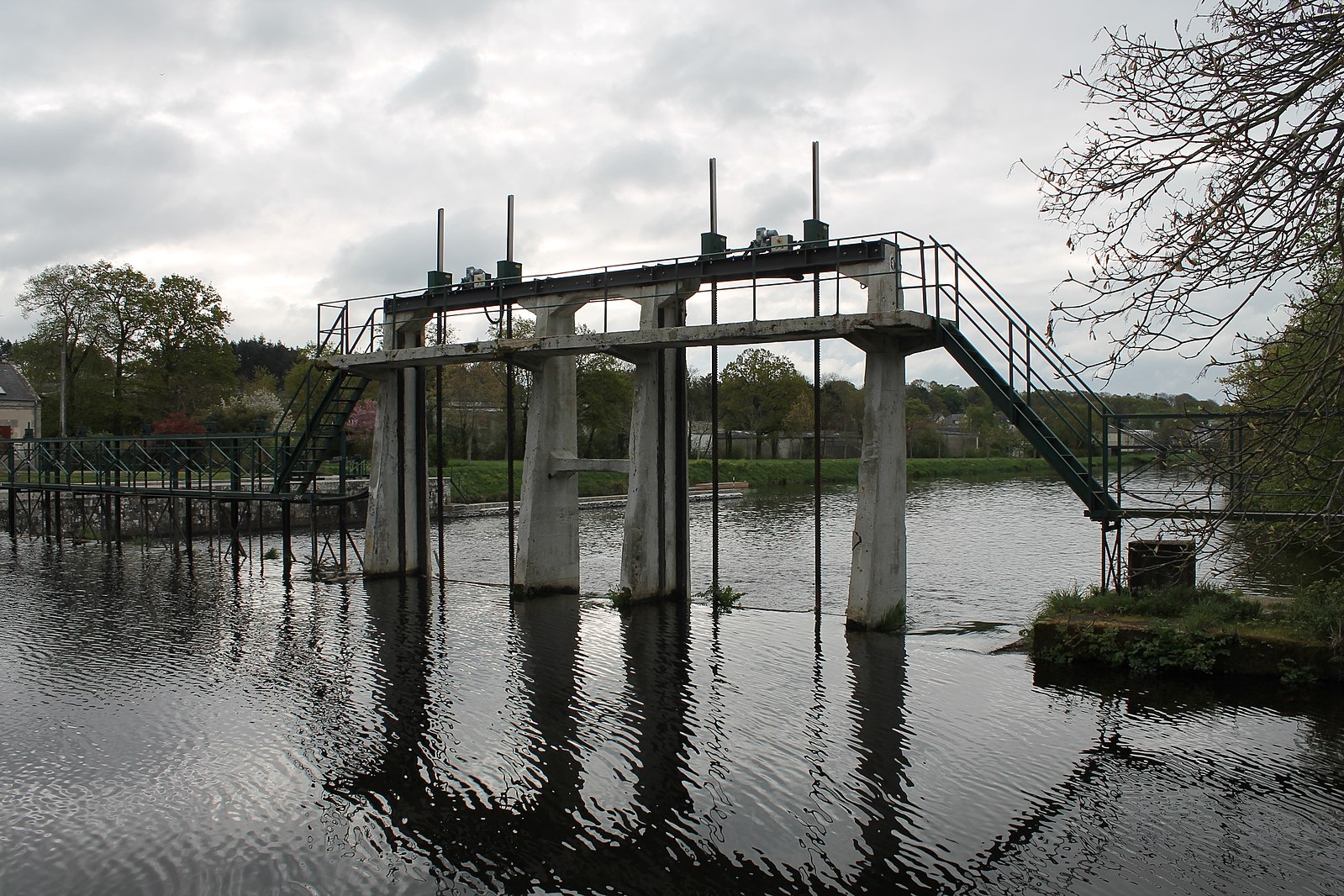 On arrive le long du Blavet, la rivière locale et au ravitaillement. Et là, le drame, pas de biscuits salés sur la table Et là, les joyeusetés commencent Après avoir longé le Blavet sur les chemins de halage, on bascule dans la forêt et on monte, on descend, on remonte, on redescend... (des "coups de cul" de 50D+ environ). Le terrain est hyper technique, racines, souches de bois à enjamber... Surtout, je commence à avoir des douleurs musculaires lorsque je passe les souches et un peu dans les montées. J'essaie d'analyser, car c'est presque une première pour moi. Serais-je déshydraté ? Le prochain ravito est un point d'eau au 48e donc je me force à beaucoup boire sachant qu'il arrive "bientôt". Ca a l'air de marcher plus ou moins. A ce moment je suis dans un groupe avec "Coton-tige", un grand gars en t-shirt blanc que je dépasse, puis il me redouble, ... Je passe au 42e en 4h15 pour 900D+, ce qui n'est pas dégueu. À ce moment je me dis que le sub-7h est peut être jouable (c'était prétentieux vu le profil de fin de course). Les jambes commencent à être très lourdes, et dur de trouver du rythme dans les successions de bosses. Par contre le parcours devient hyper sympa avec plusieurs franchissement d'écluses