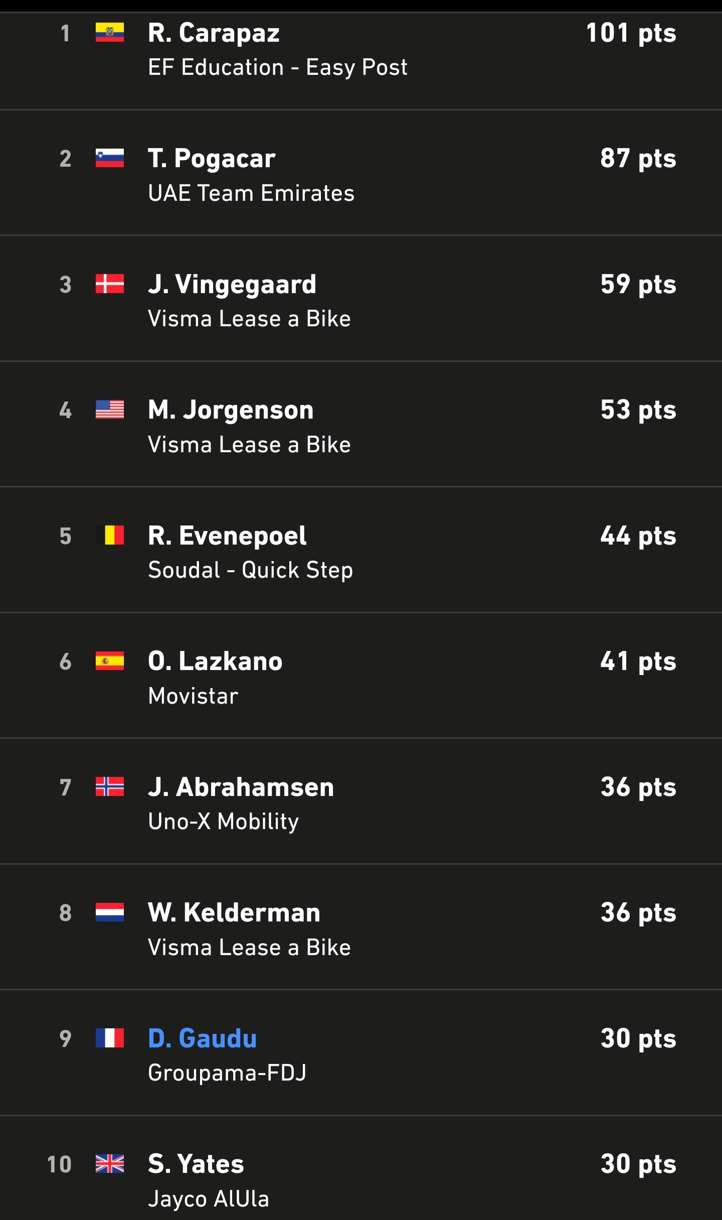 LeGrandMatheux Animateur | Heureusement que y a l'app pour suivre. Ils sont 40 dans le groupe maillot jaune. --------------- Un Milliard de mouches ne peuvent pas se tromper. |