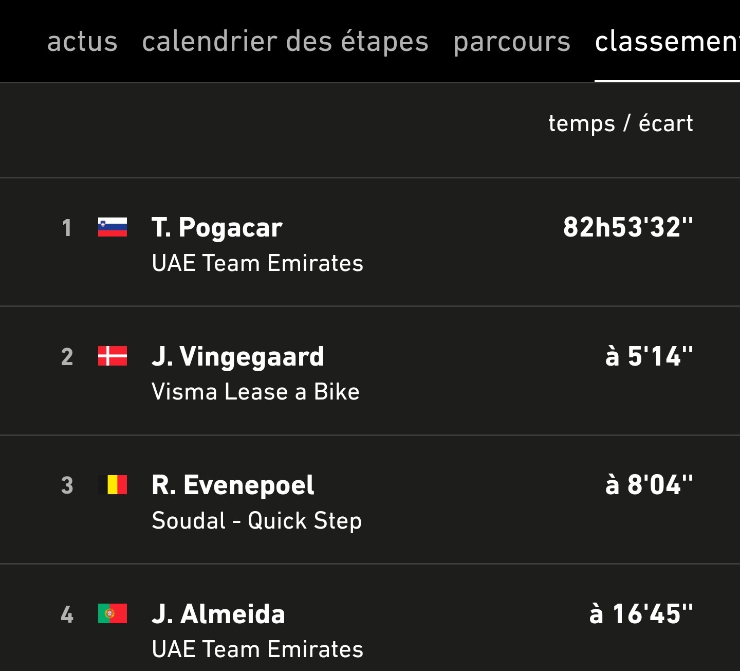 xiky | Carapaz SuperCombatif. Pas démérité, mais dommage pour Abrahamsen qui n'aura pas la chance d'aller sur le podium.