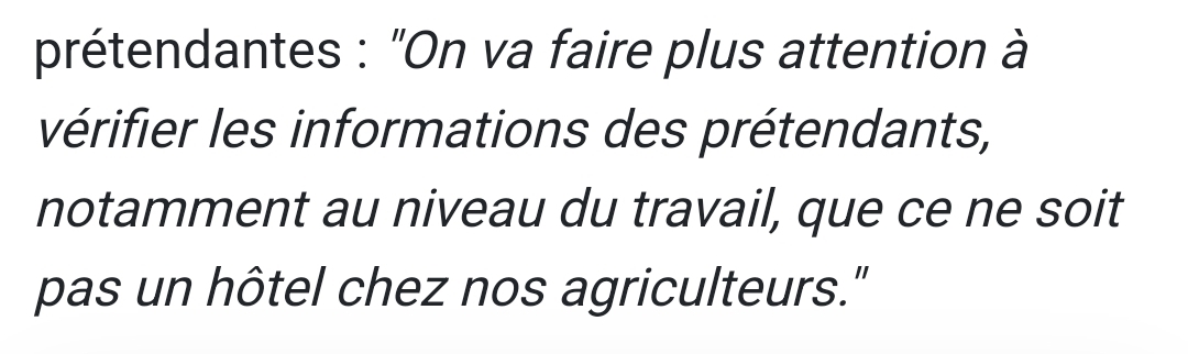 Et certains de ses reproches étaient pas forcément ultra pertinent, genre le fait qu'elle "préparait pas la bouffe avant qu'il rentre du boulot" c'était moyen. Certes elle est au chomage mais c'est pas pour ca que ca doit etre la boniche, c'est pas très woke metoo 2023 cette remarque :o[/quotemsg]
