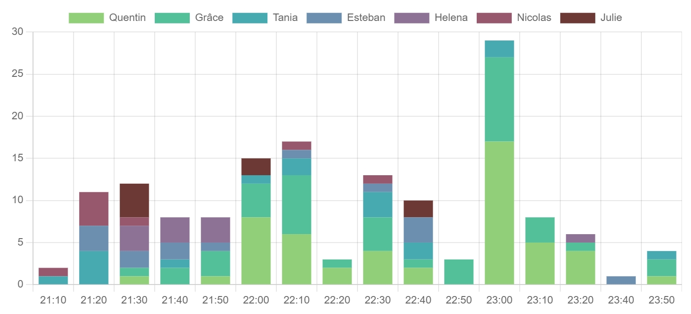 Flaie | Bonjour et désolé pour le retard, j'avais pas trop accès à l'ordi, et je ne suis pas encore en capacité de générer ces stats directement depuis le malinphone