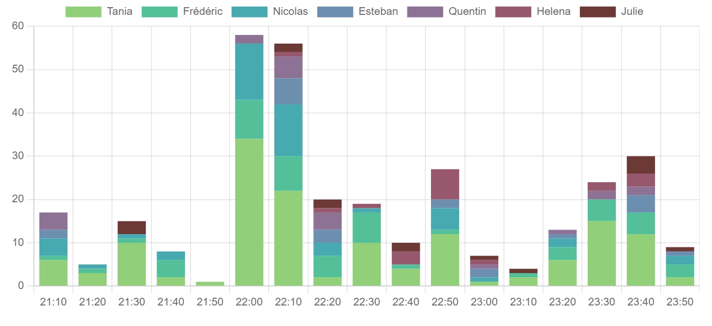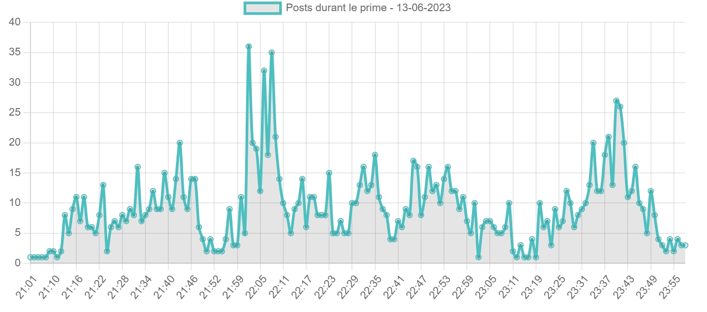 Références aux Aventuriers global: Références aux Aventuriers lors du prime du 13-06-2023: Tania, Tania, Tania Références aux aventuriers par créneau horaire (top 7): Tania, Tania, Tania Messages durant le prime : (1593) Belle performance finale Posts par jours: Message édité par Flaie le 14-06-2023 à 08:19:18 |
