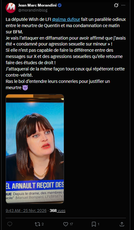 Monsieur le juge cela porte atteinte à mon honneur qu'elle prétende que je suis un agresseur sexuel alors que je ne suis qu'un harceleur sexuel et un corrupteur de mineurs!