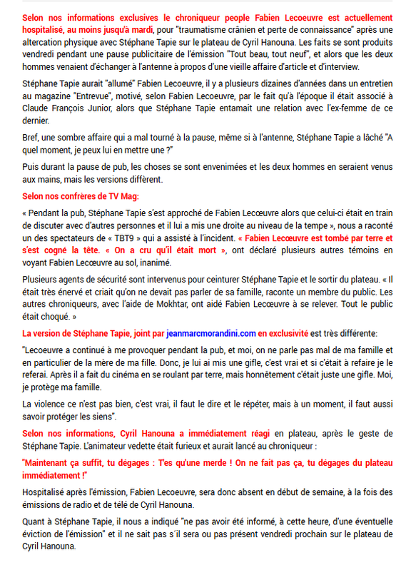 aricoahuri | Marrant quand même Hanouna qui condamne le fils Tapie, dit que la violence n'a pas sa place à la télé. Venant du mec qui joue les gros bras H24 et menace de tabasser tout le monde. |