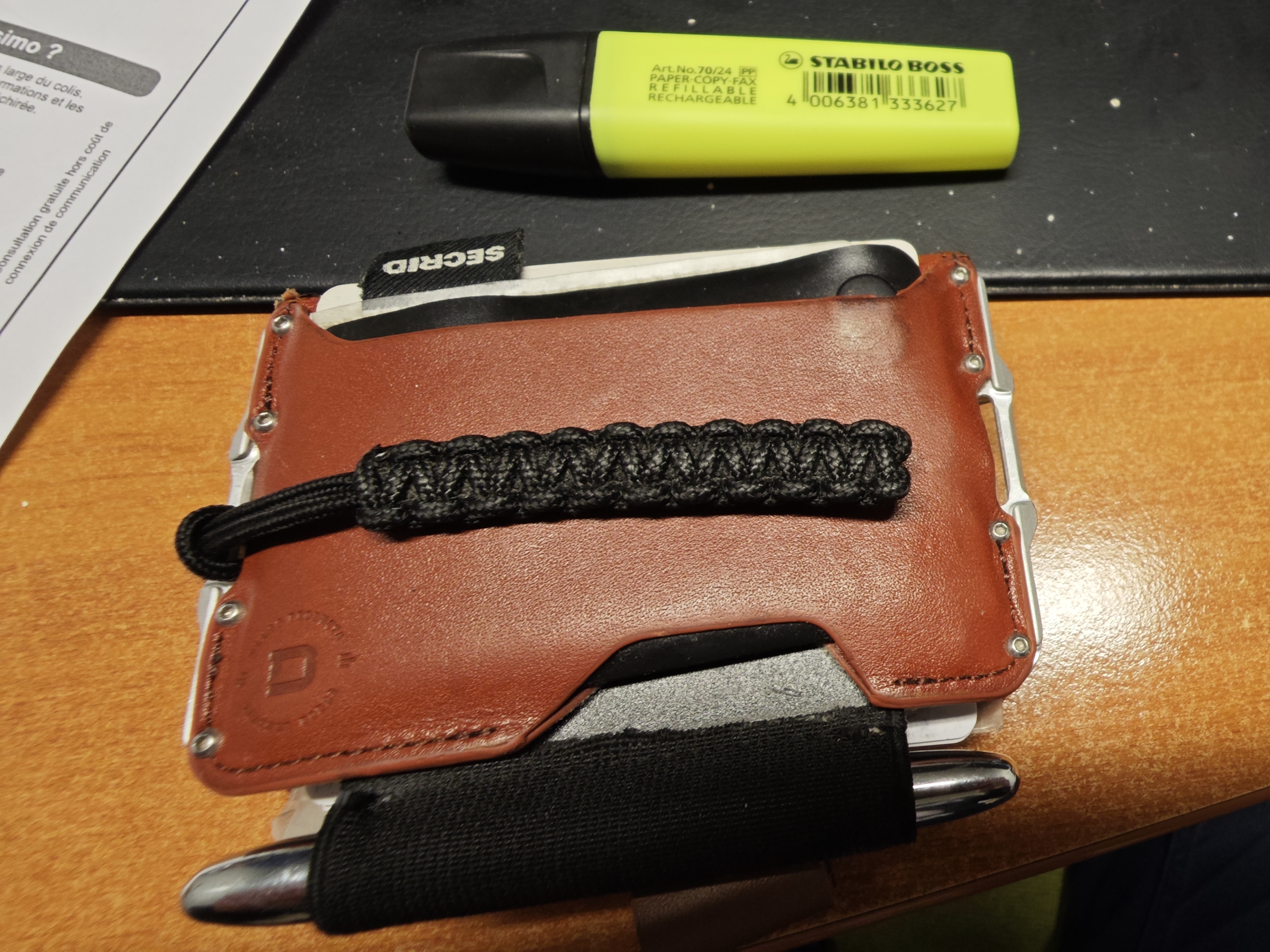 gui3gui | J'ai un dango rfid en cuir avec quasiment tous mes papiers (hors carte grise). Acheté sur mukama. J'en suis très content, j'ai ajouté deux hacks ; un porte monnaie/jeton secrid, un porte stylo toujours de chez dango dans lequel je mets un fisher bullet pen. Le modèle qui se replie en deux pour prendre moins de place. D'ailleurs à priori on peut maintenant verser ses cg dans France identité. https://www.dangoproducts.com/colle [...] per-wallet |