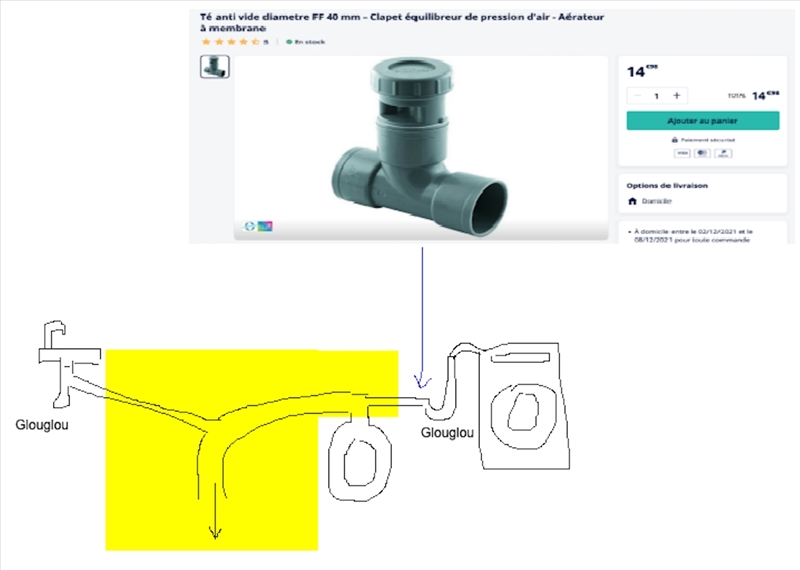 Retour sur mon problème de plomberie. J'ai acheté le clapet aérateur/équilibreur de pression Nicoll (un peu cher pour ce que c'est mais j'ai cru comprendre que c'était le top). Je l'ai intercalé avant l'évacuation de la machine à laver, de façon à ce que ce soit le point d'air le plus haut de la colonne (légèrement plus haut que le siphon dans lequel j'entendais les glouglous), mais je ne sais pas si ce détail a son importance. Ça fonctionne ! Ce n'est pas complètement silencieux, on entend un bruit d'aspiration par moments, mais plus de glouglous et donc a priori plus de remontées d'odeurs possibles. Message édité par 84mickael le 12-12-2021 à 23:59:53 |