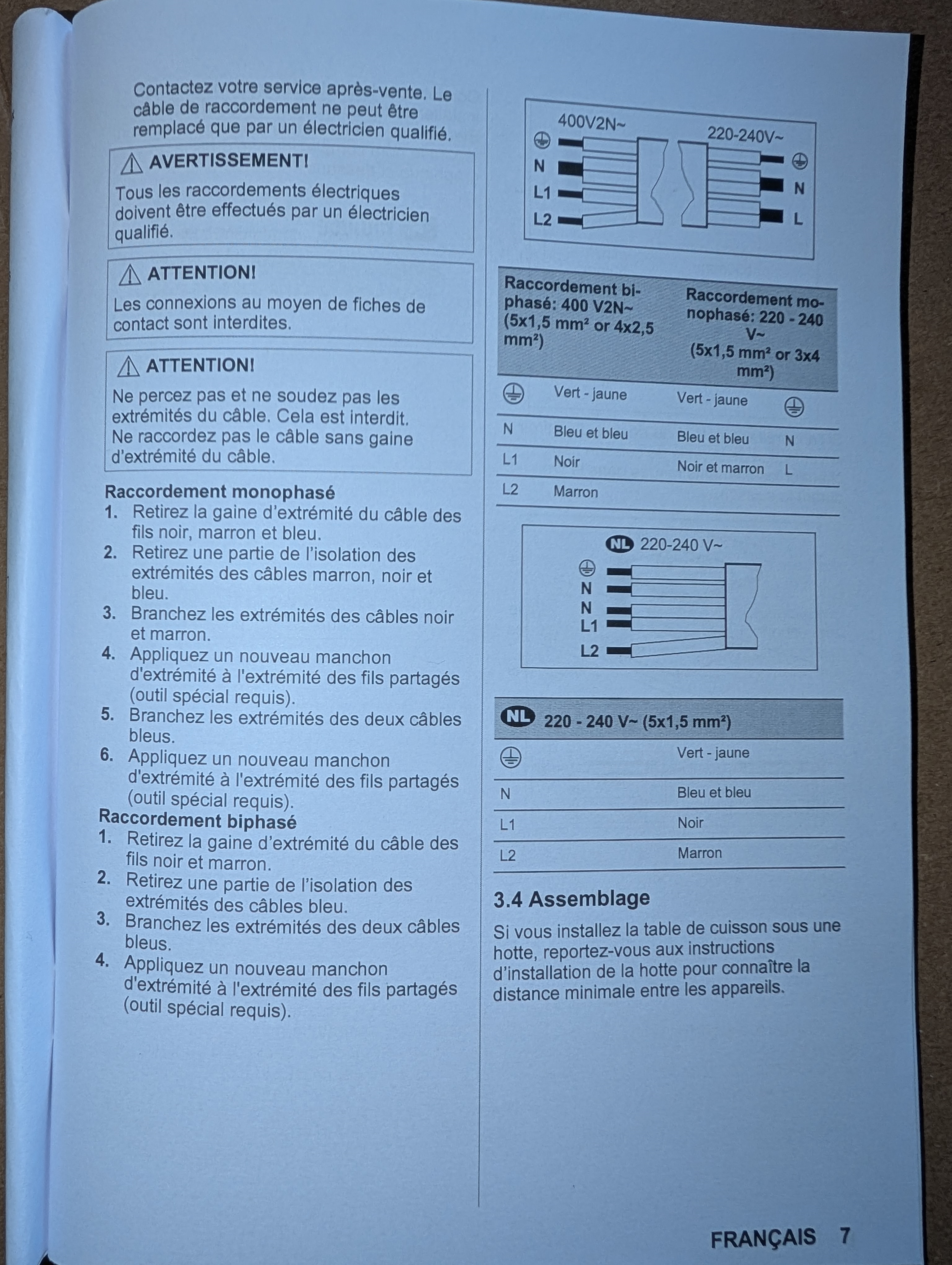 brunold | Pour raccorder ta table à induction, tu mets les 2 fils bleu sur le neutre et les 2 fils marron et noir sur ta phase.