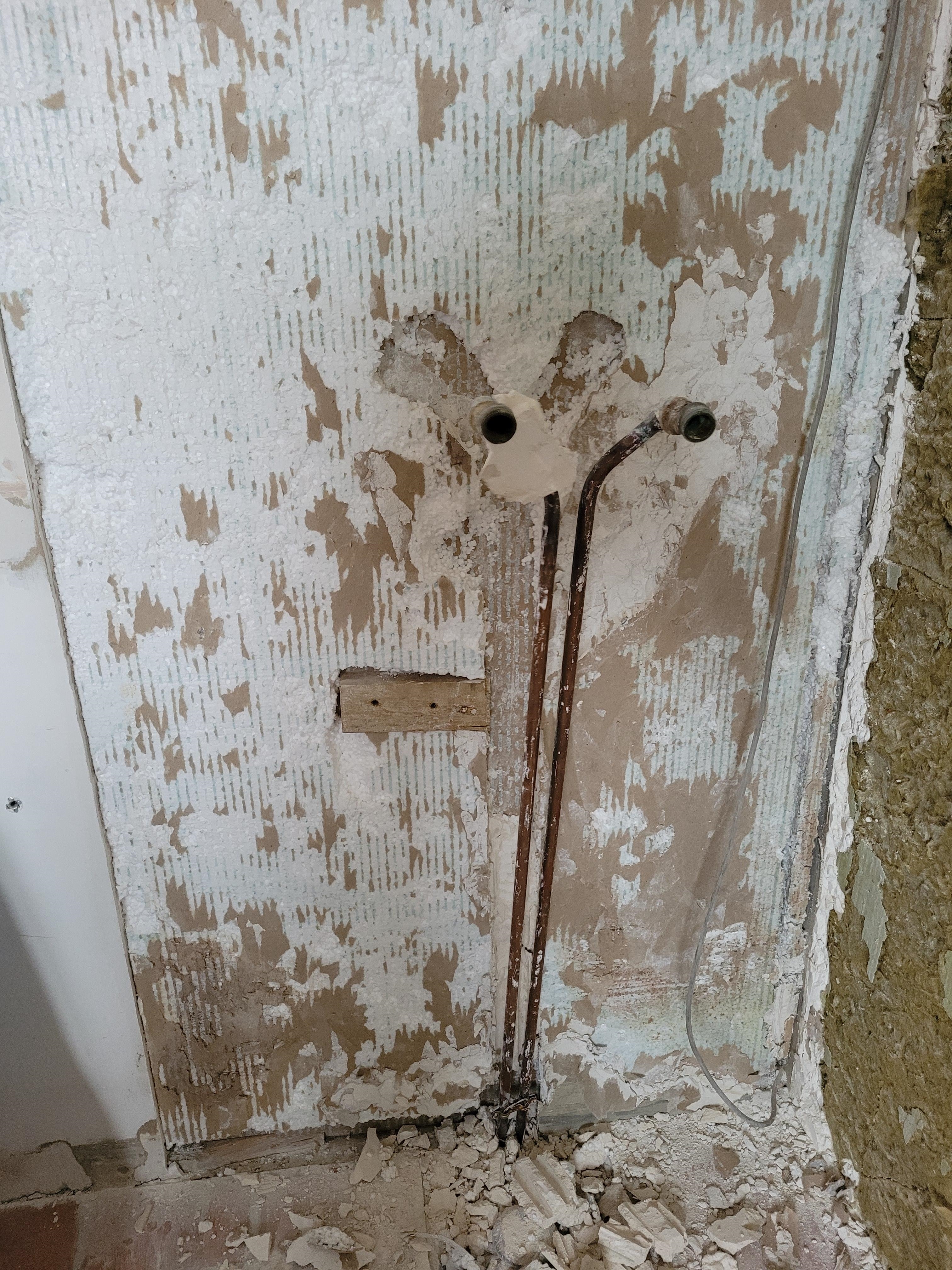 Derrière le mur il s'agit des escaliers vers le sous-sol relativement isolé. Sachant qu'il s'agit de ba10 et ayant un reste de ba13 qui ne passera pas par dessus le polystyrène, je me tâte à tout virer, poser des rails avec isolants neuf et poser le ba13 dessus.. après c'est peut être pas utile..? |
