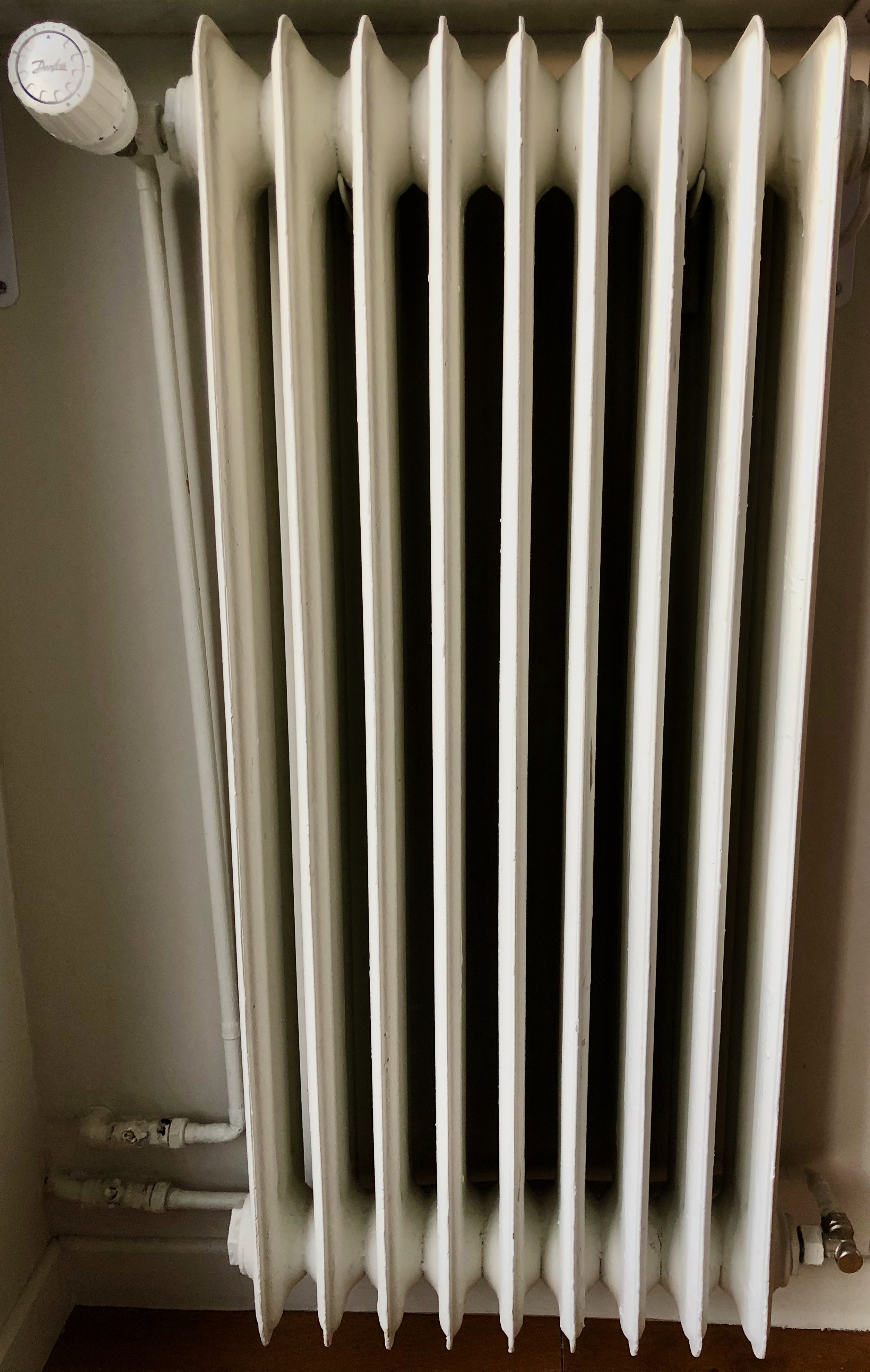 Je crois que c'est toléré en cas d'impossibilité technique / coût excessif. En occurrence, dans cet immeuble des années 50/60, le réseau d'eau est complexe, il y a de nombreuses canalisations, qui passent toutes dans les appartements et qui ont régulièrement été camouflées, ce qui ne facilite pas les interventions. Des répartiteurs de frais de chauffage ne semblent pas très pertinents / justes, dans cette configuration. Chez moi (52 m2), il y a :