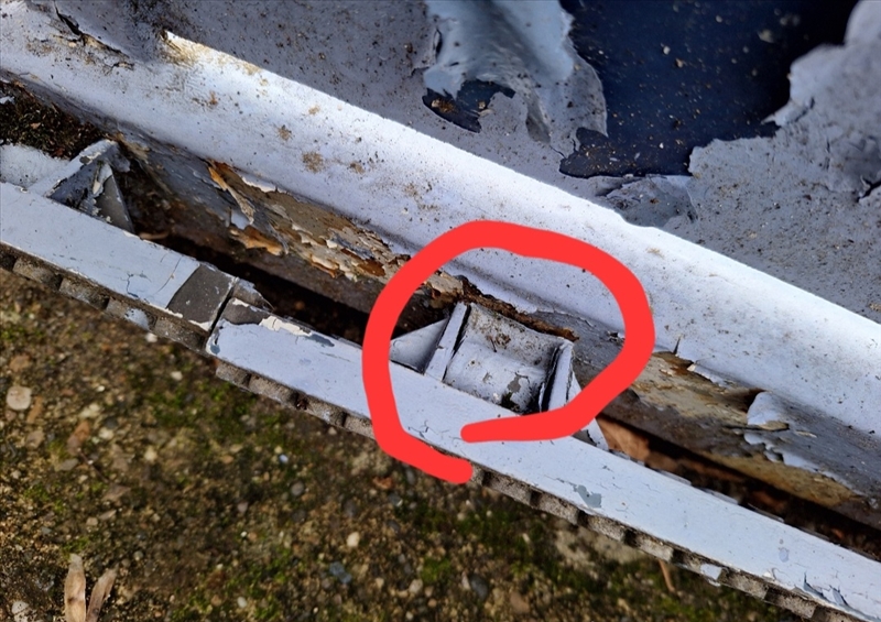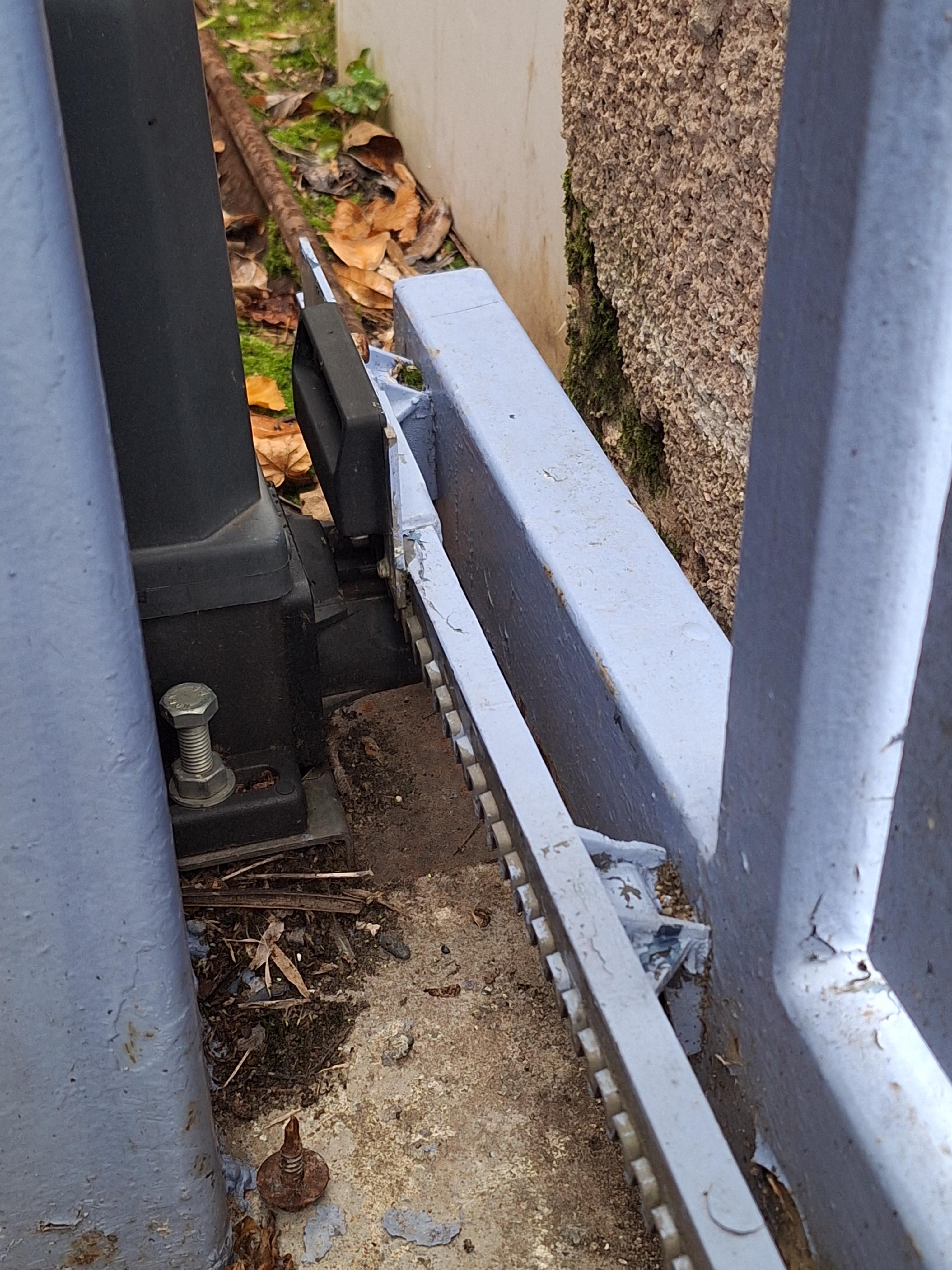 Alors j'ai fait des photos. C'est au niveau de la barre en métal en bas Elle est désolidarisée du portal ici