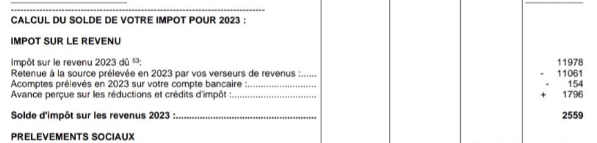 Les impôts ne savent pas exactement combien j'ai gagné en 2023, mais ça peut être plutôt bien estimé en ajustant dès le 01/01/2023 son prélèvement à la source et l'acompte mensuel. Ça ne change pas qu'au final, dans un cas idéal où t'as X€ d'impôt net (en étant à iso réduction d'impôt sur l'année précédente) et que ton PAS + acompte sur 2023 a été de X€, tu n'as théoriquement plus d'impôts à payer. Dans mon cas, nous avons payé 11000€ en PAS + acompte sur 12000€ d'impôt net. On est donc plutôt proche. Mais il y a les 1800€ d'avance reçue en janvier à rembourser qui viennent s'ajouter. |