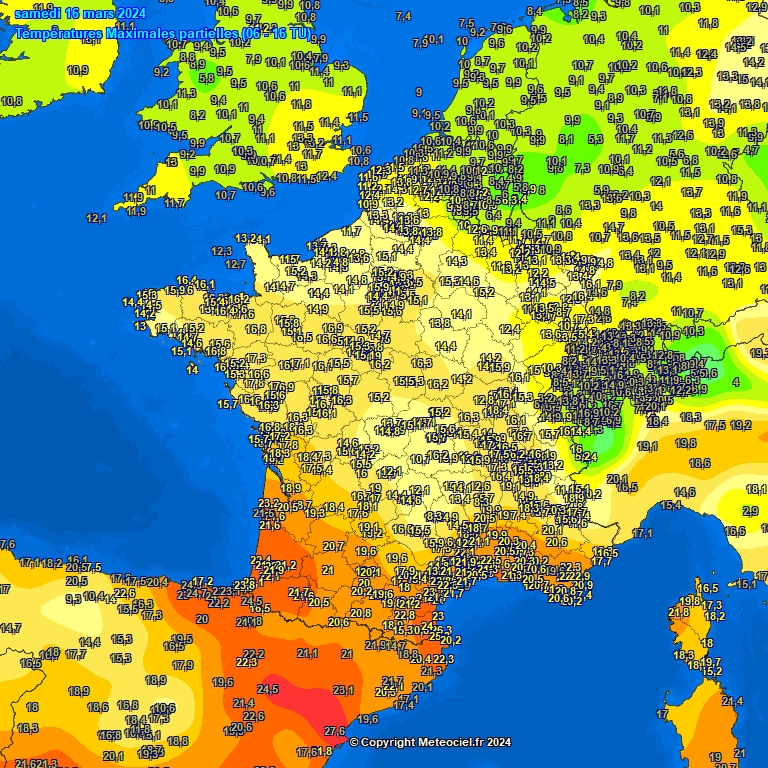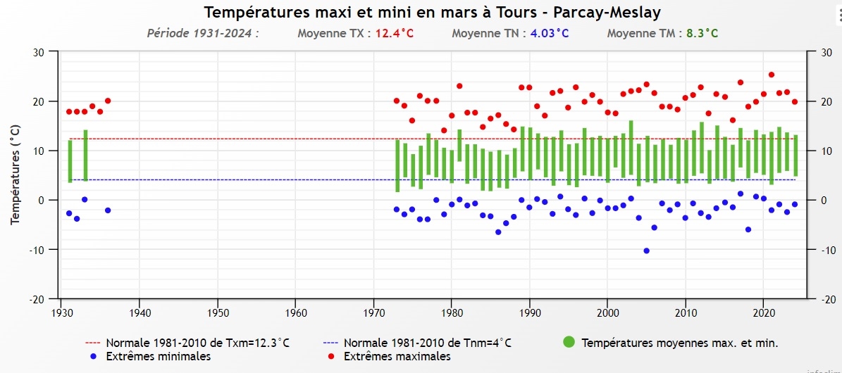 canardeur | 20 degrès en mars même ici c'est tous les ans oui (et parfois en février dernièrement Alors être choqué de ça à... Toulouse Édit : https://www.meteociel.fr/climatolog [...] annee=1990 Mars 90 ici c'est du 21 sur plusieurs jours et j'ai pris au pif... Message édité par canardeur le 16-03-2024 à 19:28:16 |