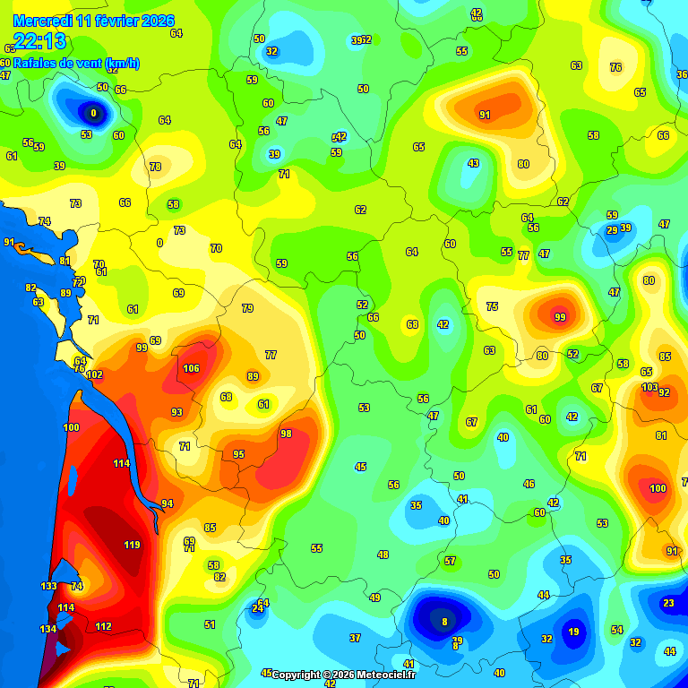 Les pins sur des sols bien détrempés depuis des jours ça tombe bien, même assez loin des côtes comme à Langon où les rafales doivent être seulement autour de 80km/h.