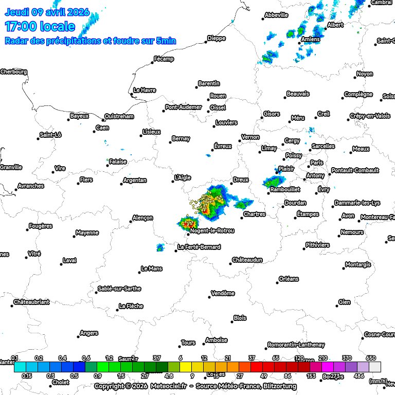 Sebwap ... . -... .-- .- .--. | L'orage passe au sud de Paris, on voit quelques éclairs au loin mais rien ici, pas une goutte. Message édité par Sebwap le 09-04-2026 à 20:35:41 |